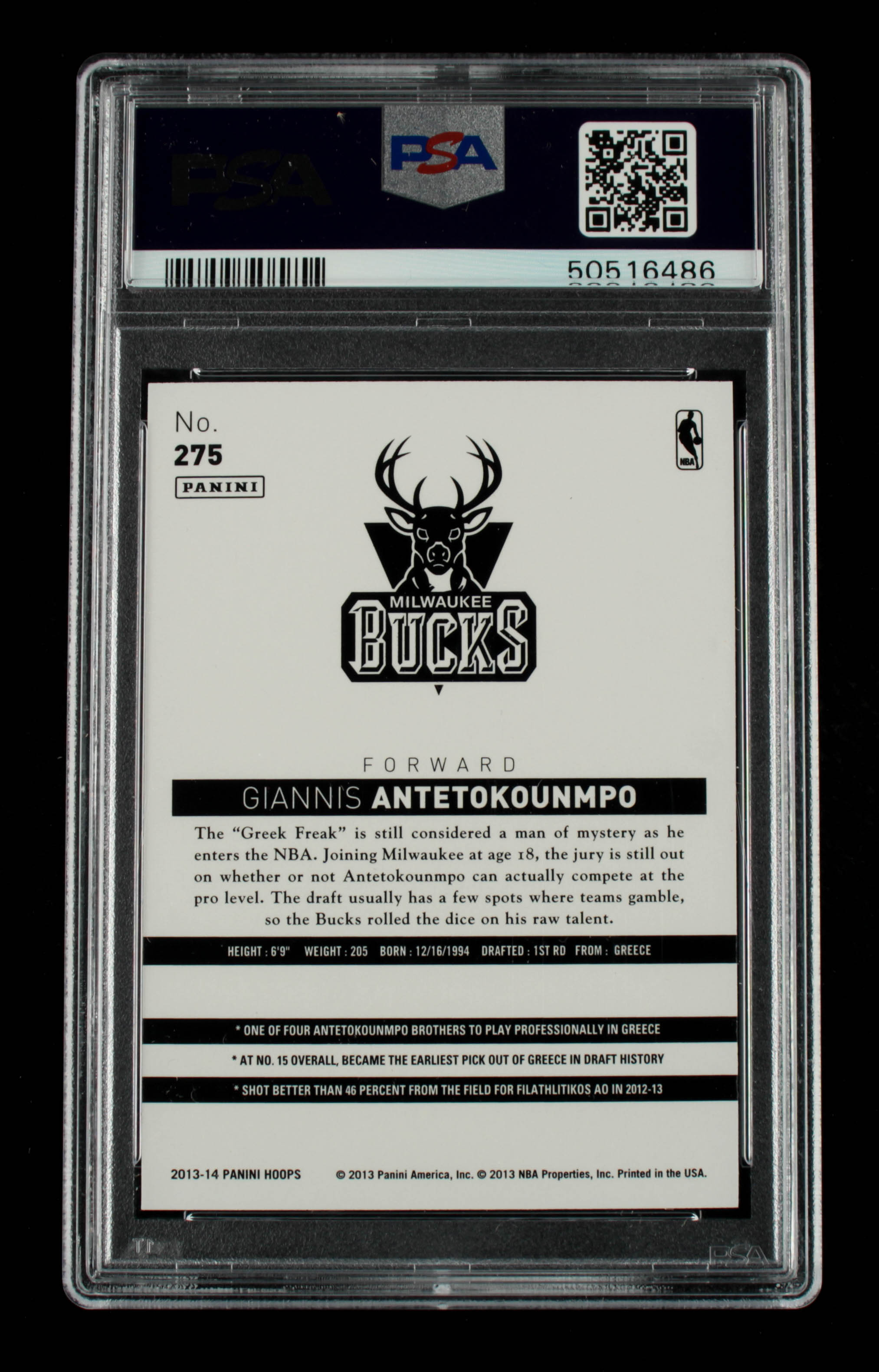 Giannis Antetokounmpo 2013-14 Hoops #275 RC (PSA 10)