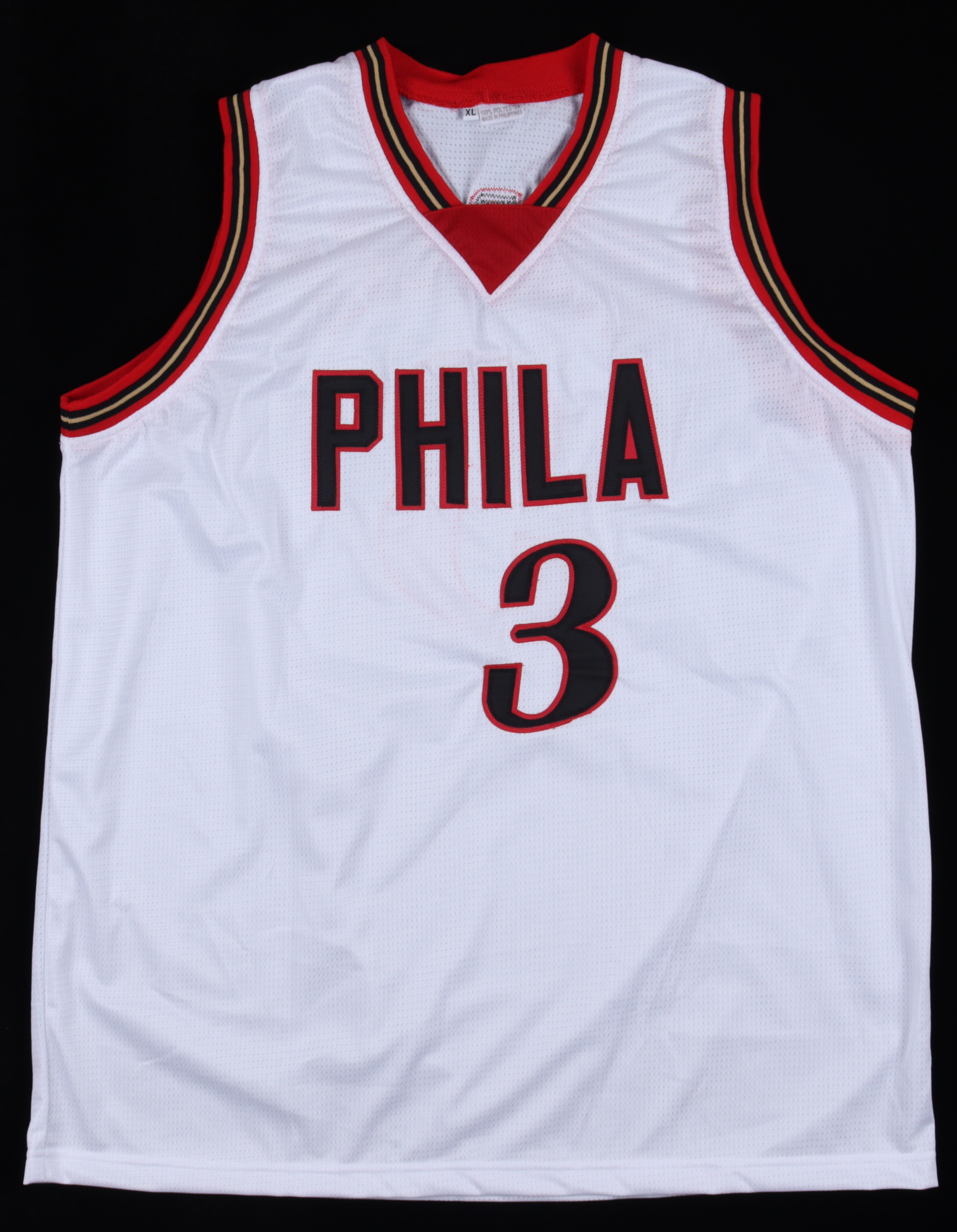 Custom on-court style jersey. Everything is sewn on, size XL. Has been hand-signed by Allen Iverson (HOF).
