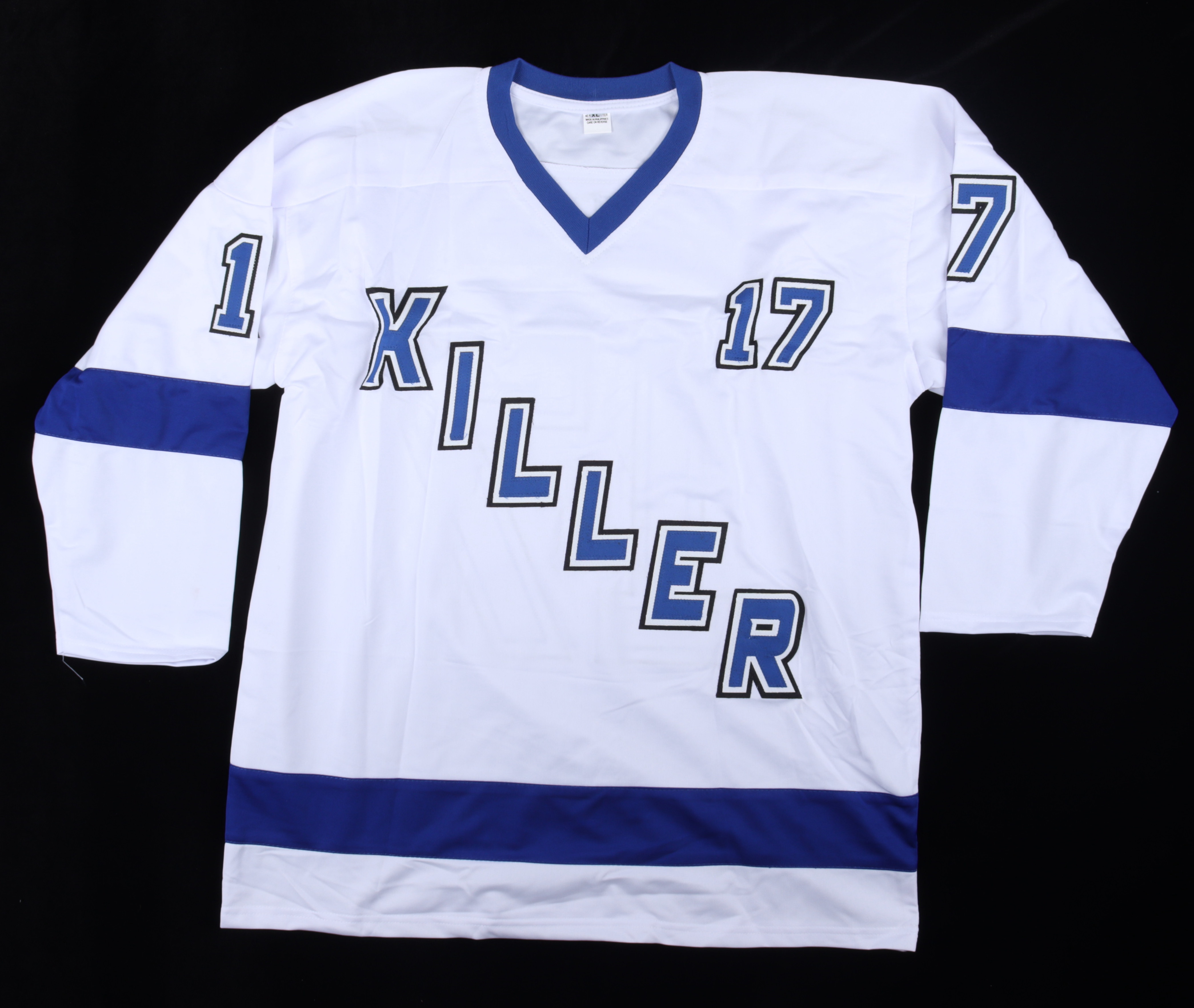 Custom on-ice style jersey. Everything sewn on, size XL. Hand-signed by Alex Killorn.