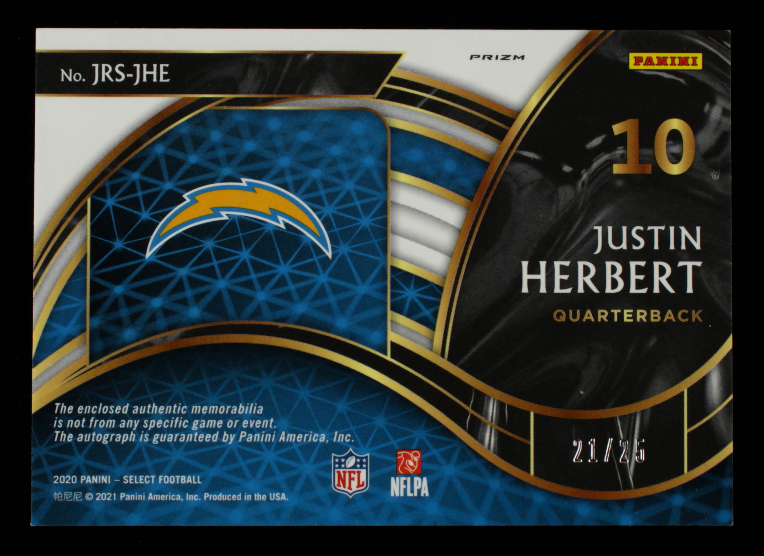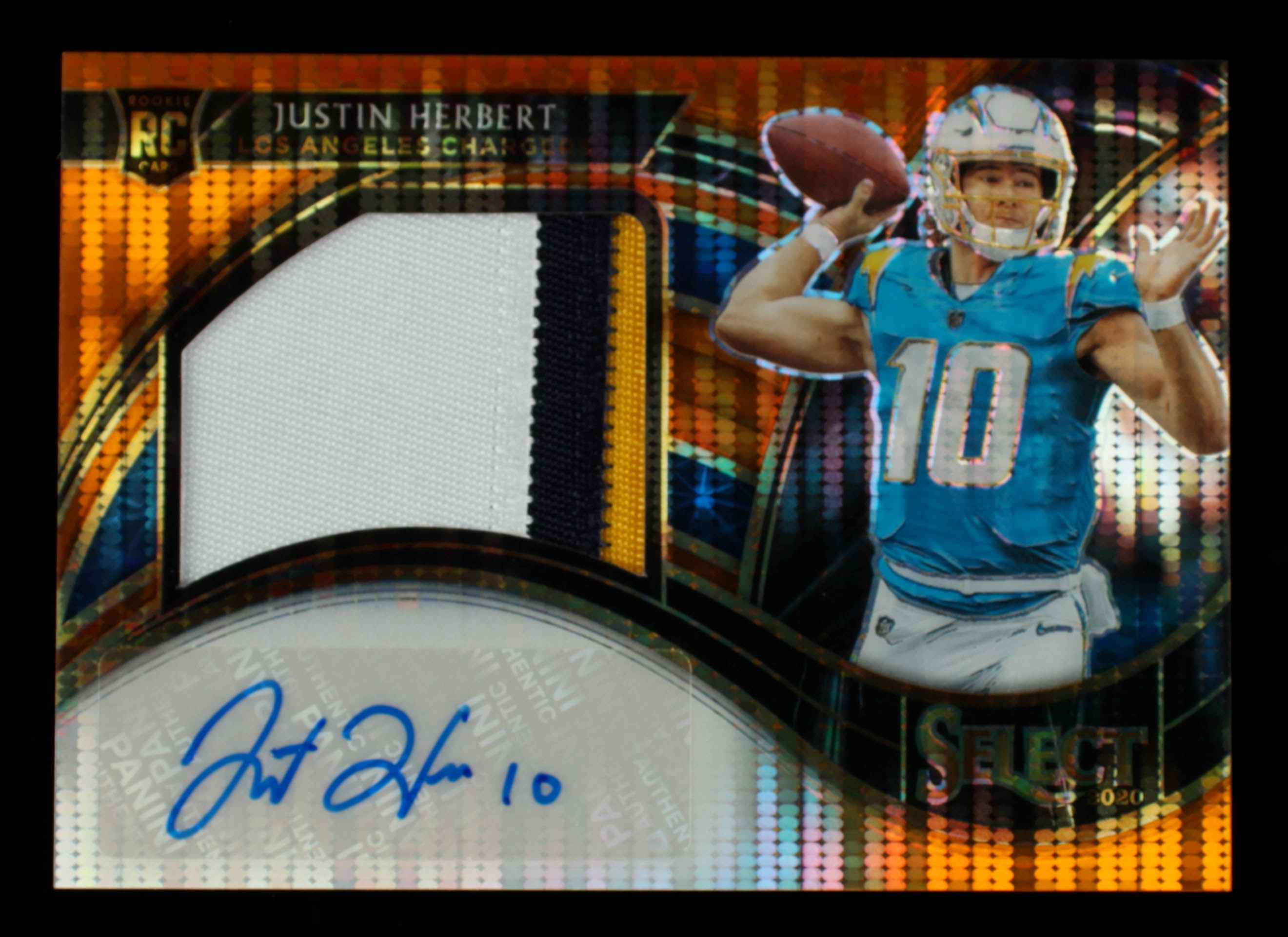 Justin Herbert 2020 Select Jumbo Rookie Signature Swatches Prizm Neon Orange Pulsar #4 #21/25