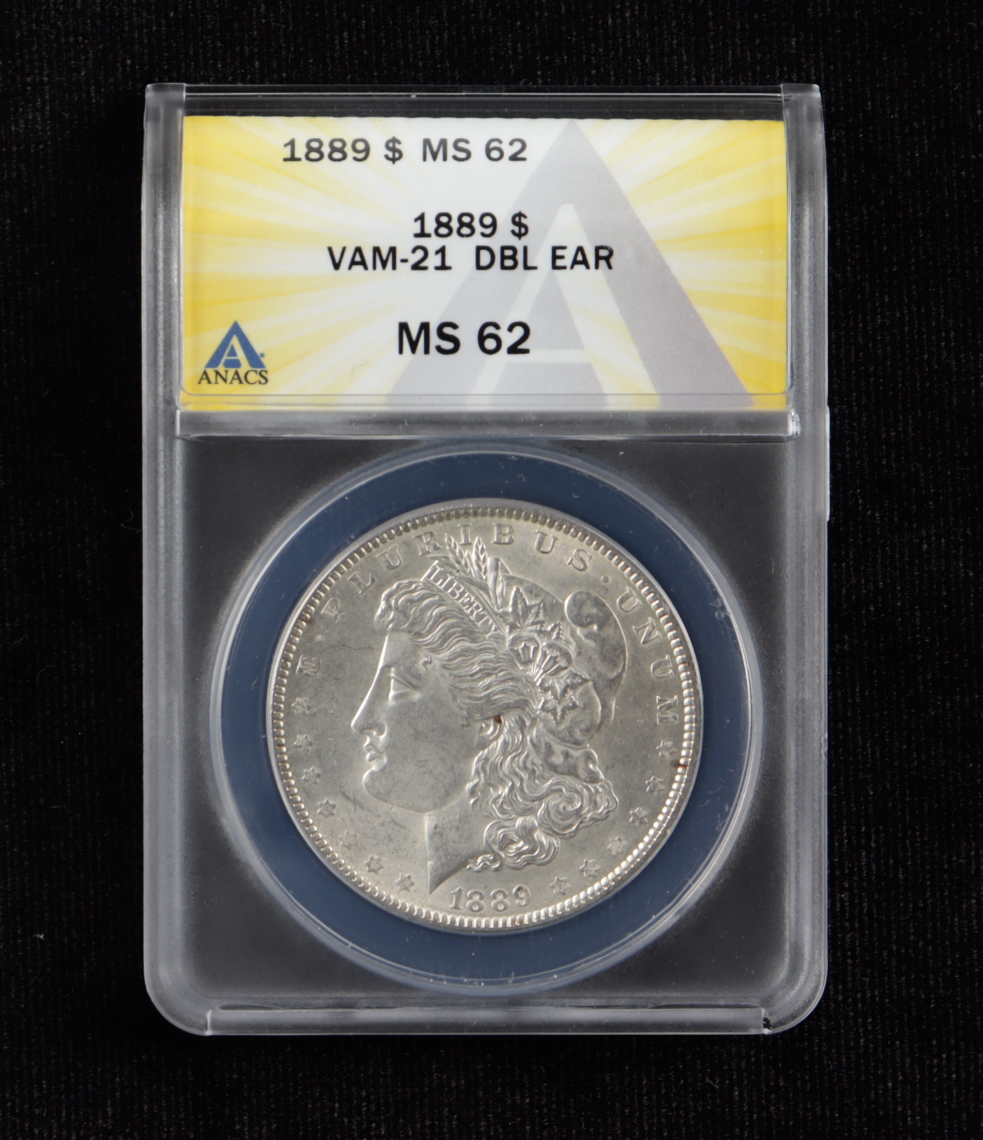 1889 Morgan Silver Dollar VAM-21 Doubled Ear (ANACS MS62)