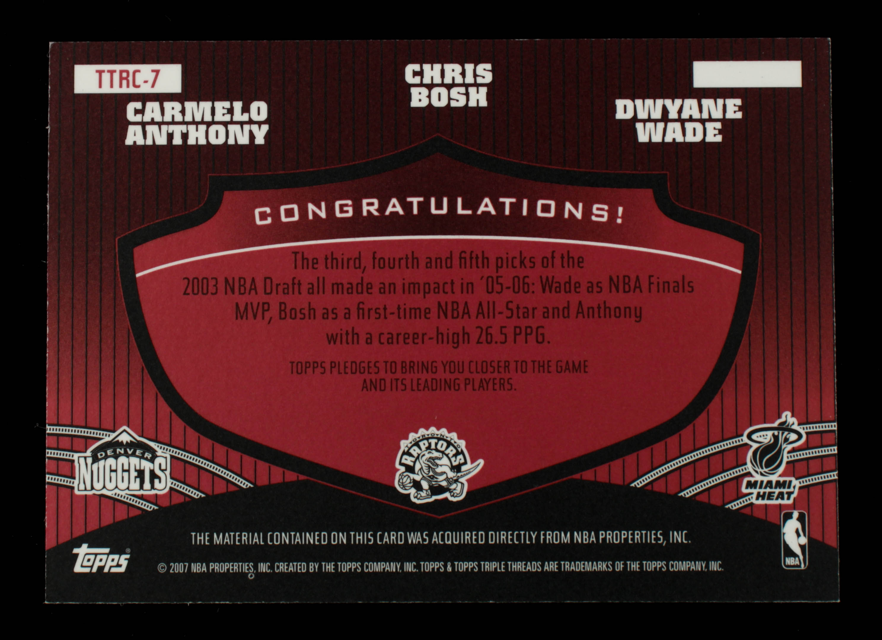 Dwayne Wade / Chris Bosh / Carmelo Anthony 2006-07 Topps Triple Threads Relics Combos #7 #10/36