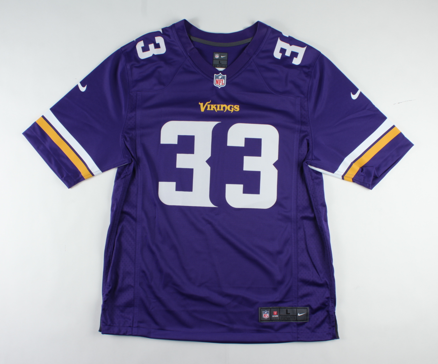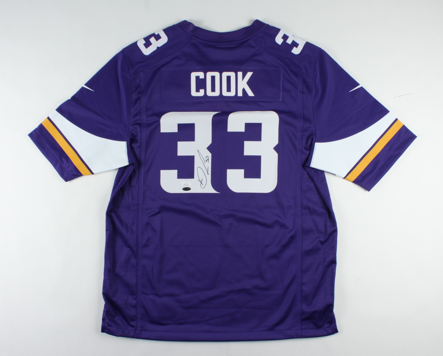 Nike on-field style jersey. Everything printed on, size XL. Hand-signed by Dalvin Cook (Minnesota Vikings).