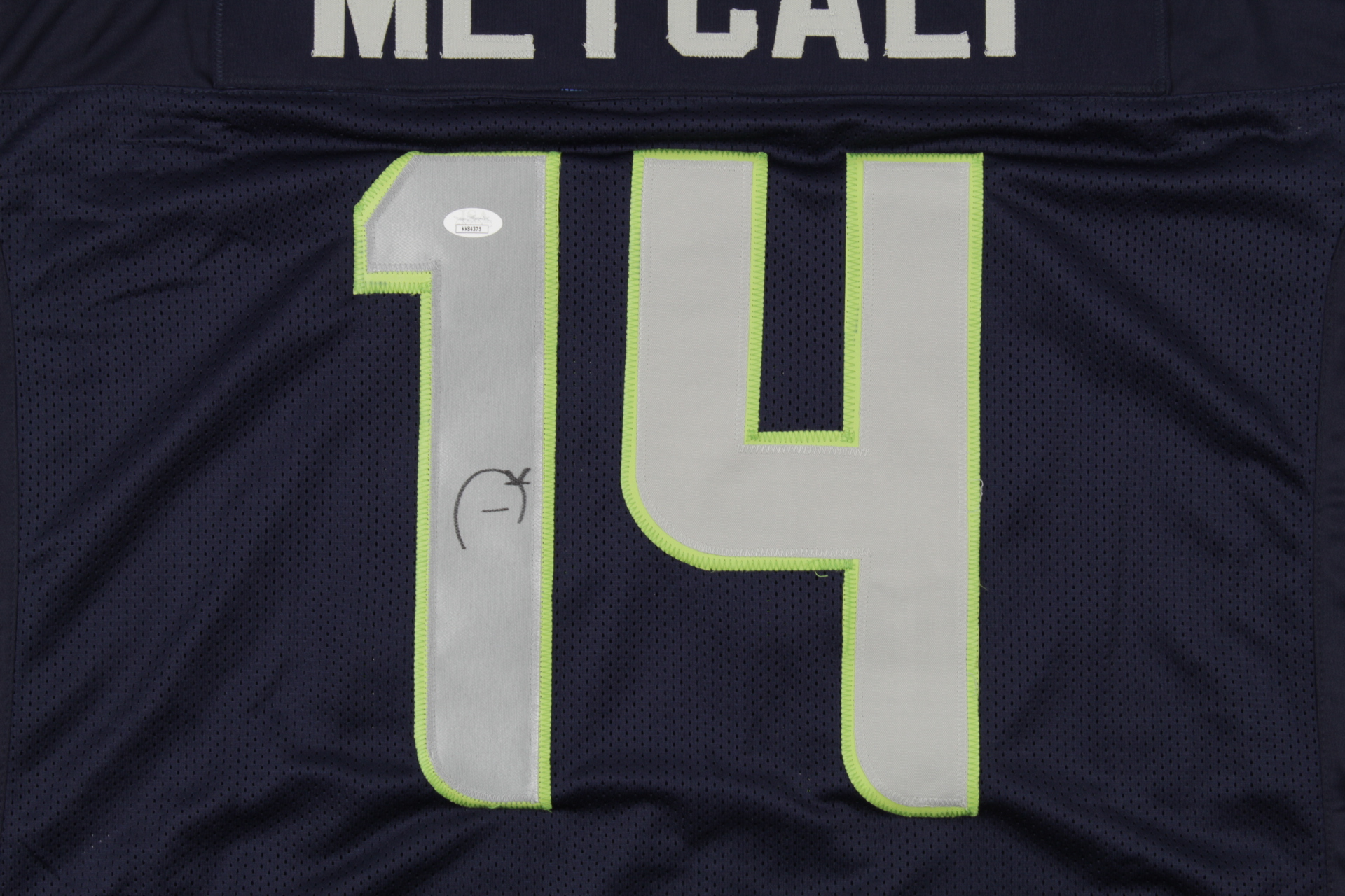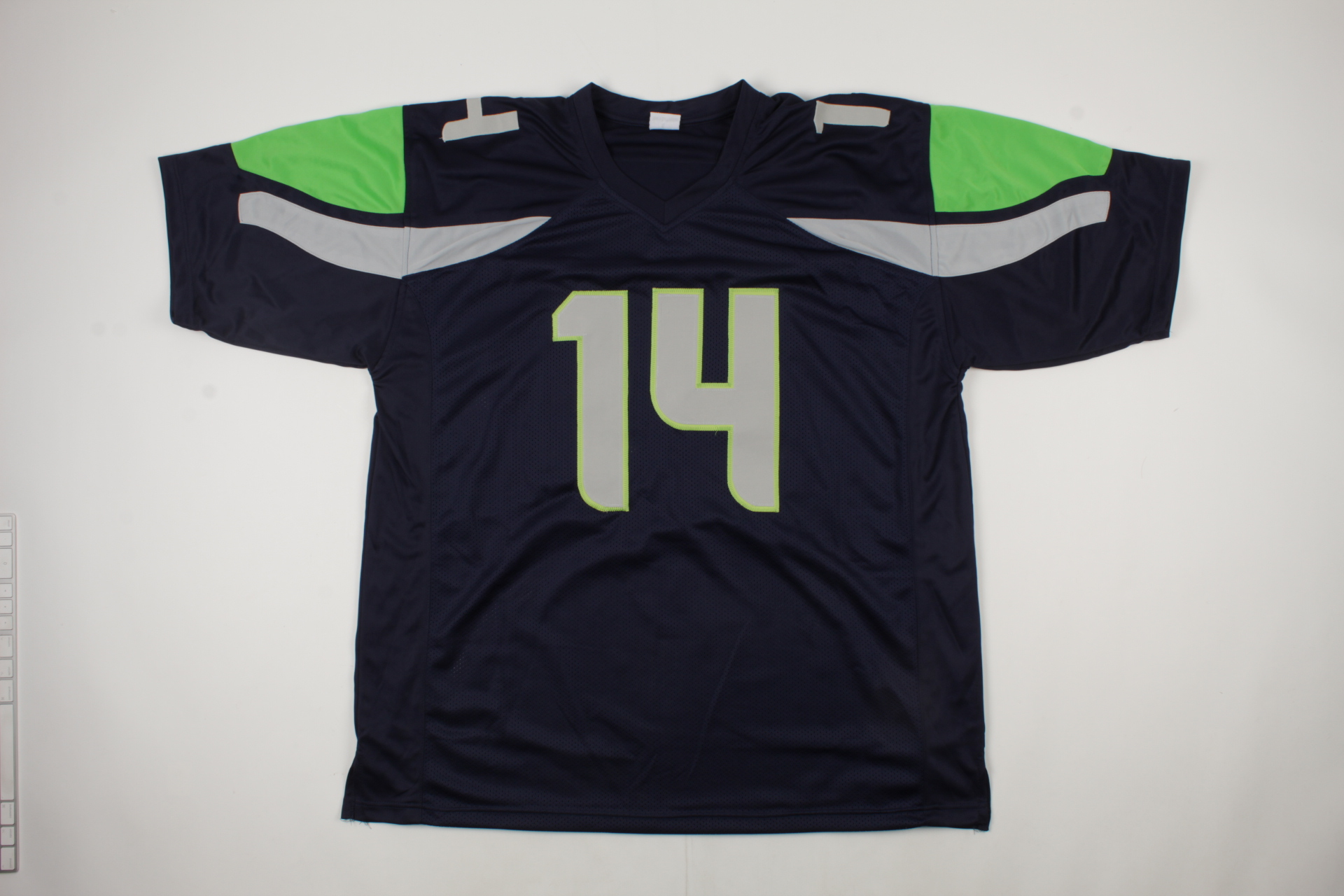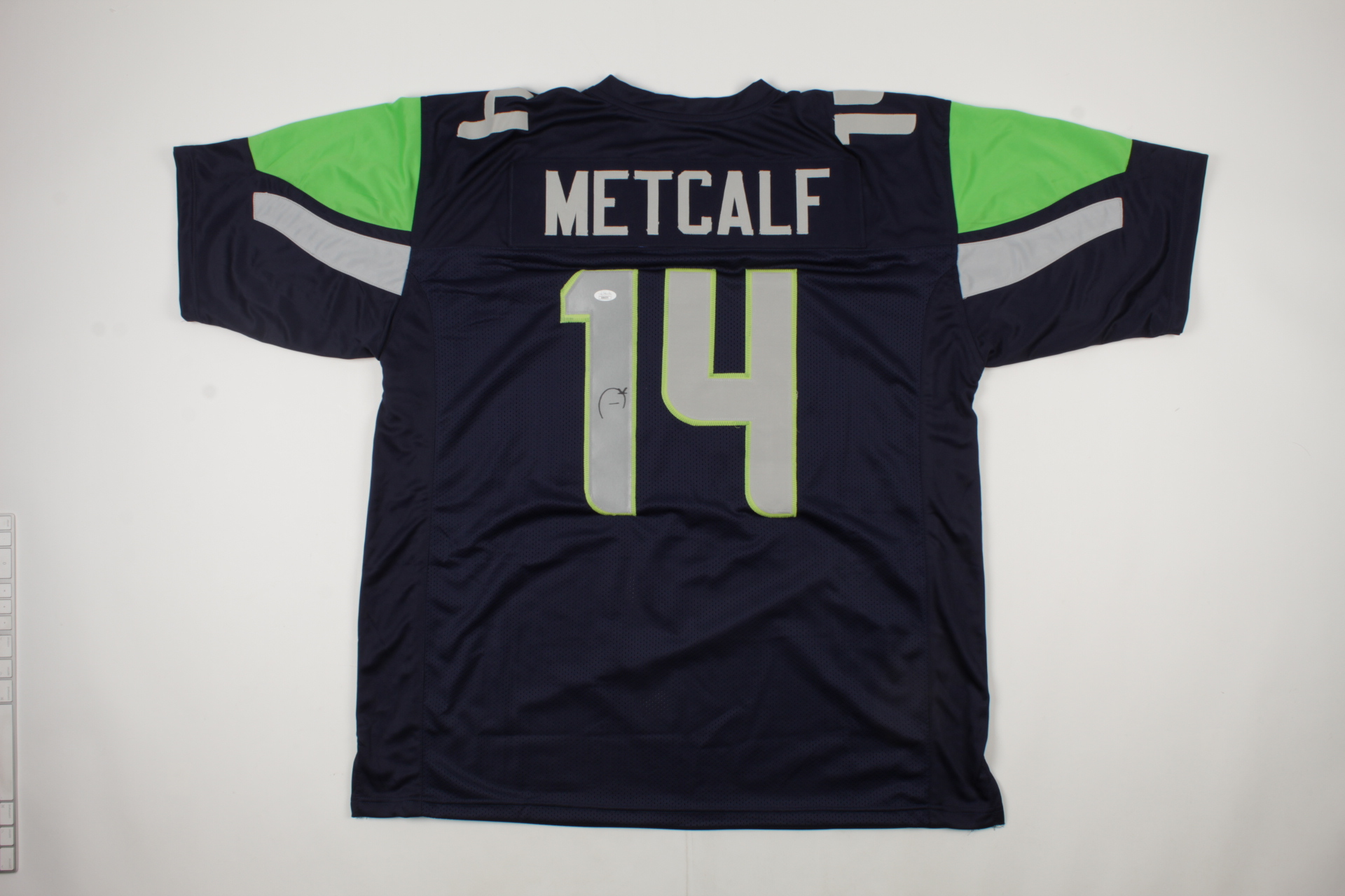 Custom on-field style jersey. Everything is sewn on, size XL. Has been hand-signed by DK Metcalf.