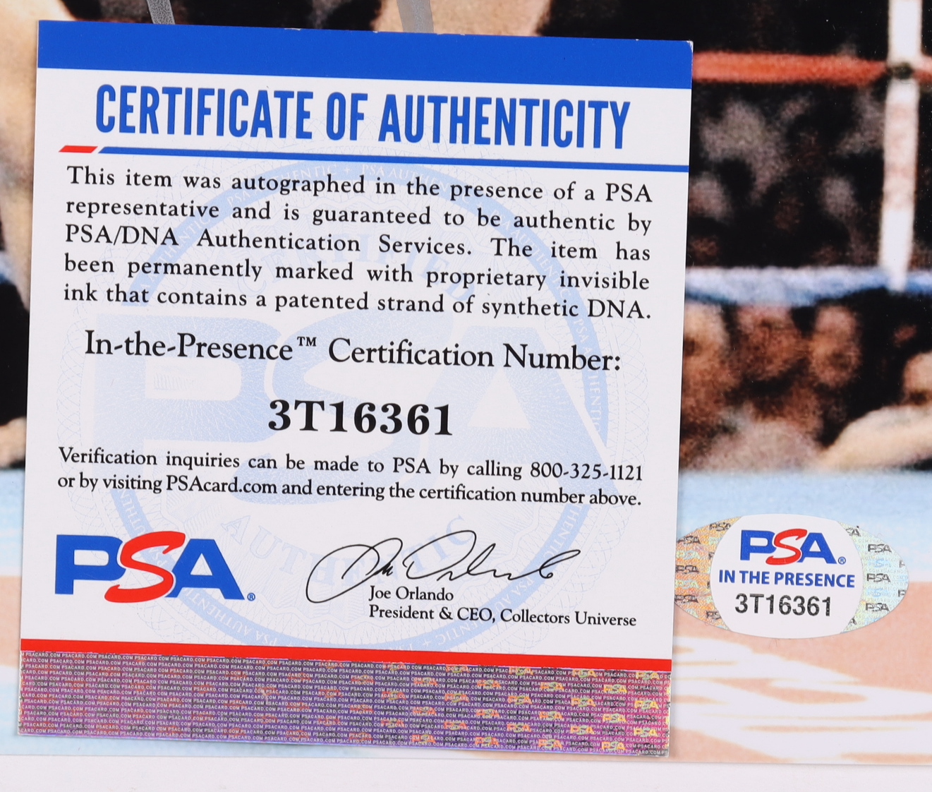 The lot / autograph(s) includes an official PSA/DNA hologram and matching COA for authenticity purposes. The signing of this item was witnessed by PSA.