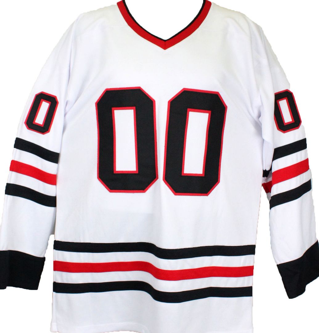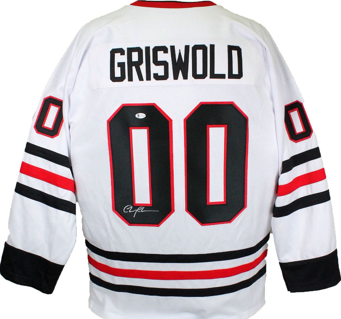 Custom on-ice style jersey. Everything is sewn on, size XL. Hand-signed by Chevy Chase (Clark Griswold).