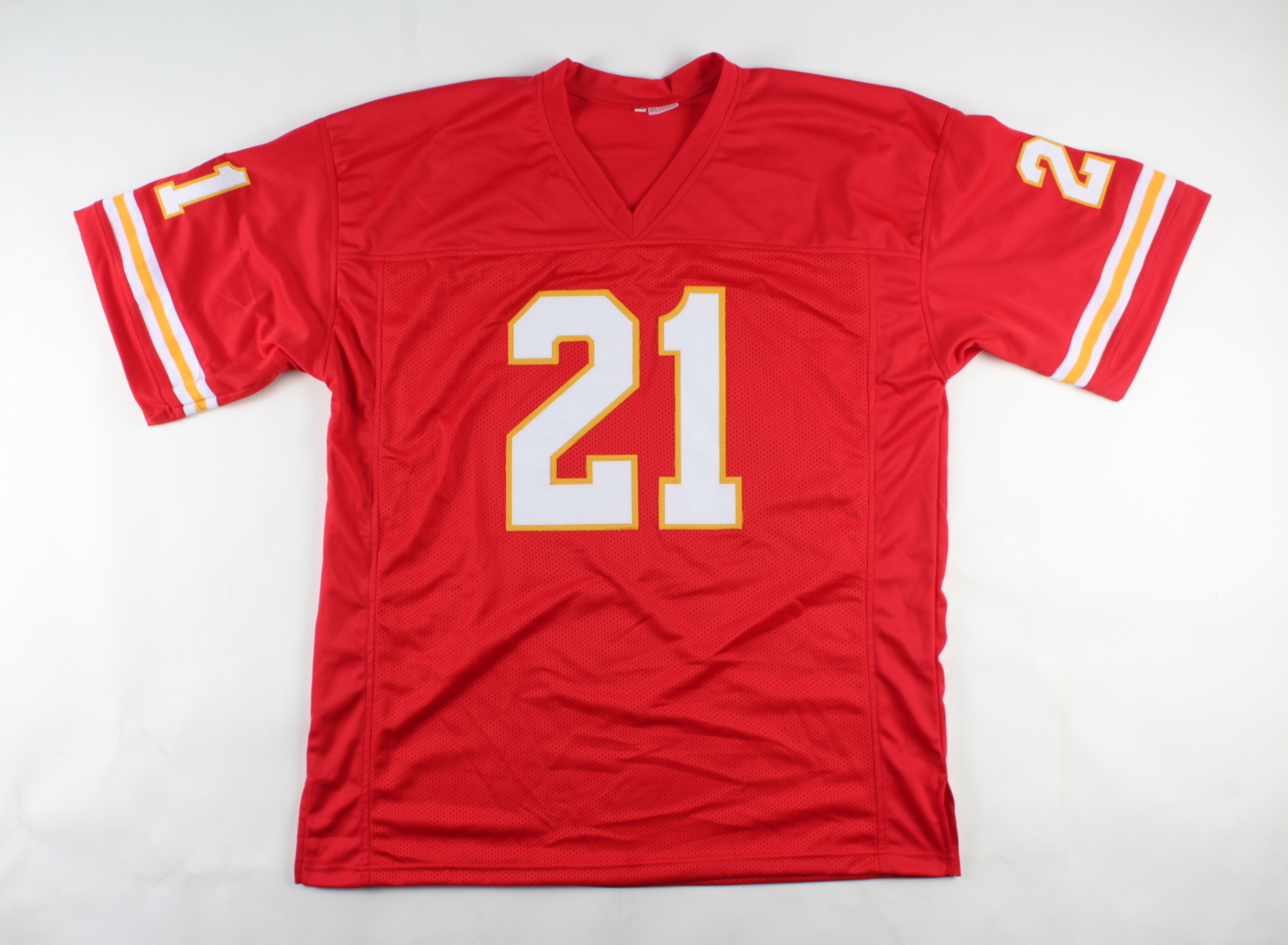 Custom on-field style jersey. Everything is sewn on, size XL. Has been hand-signed and inscribed by Mike Garrett.
