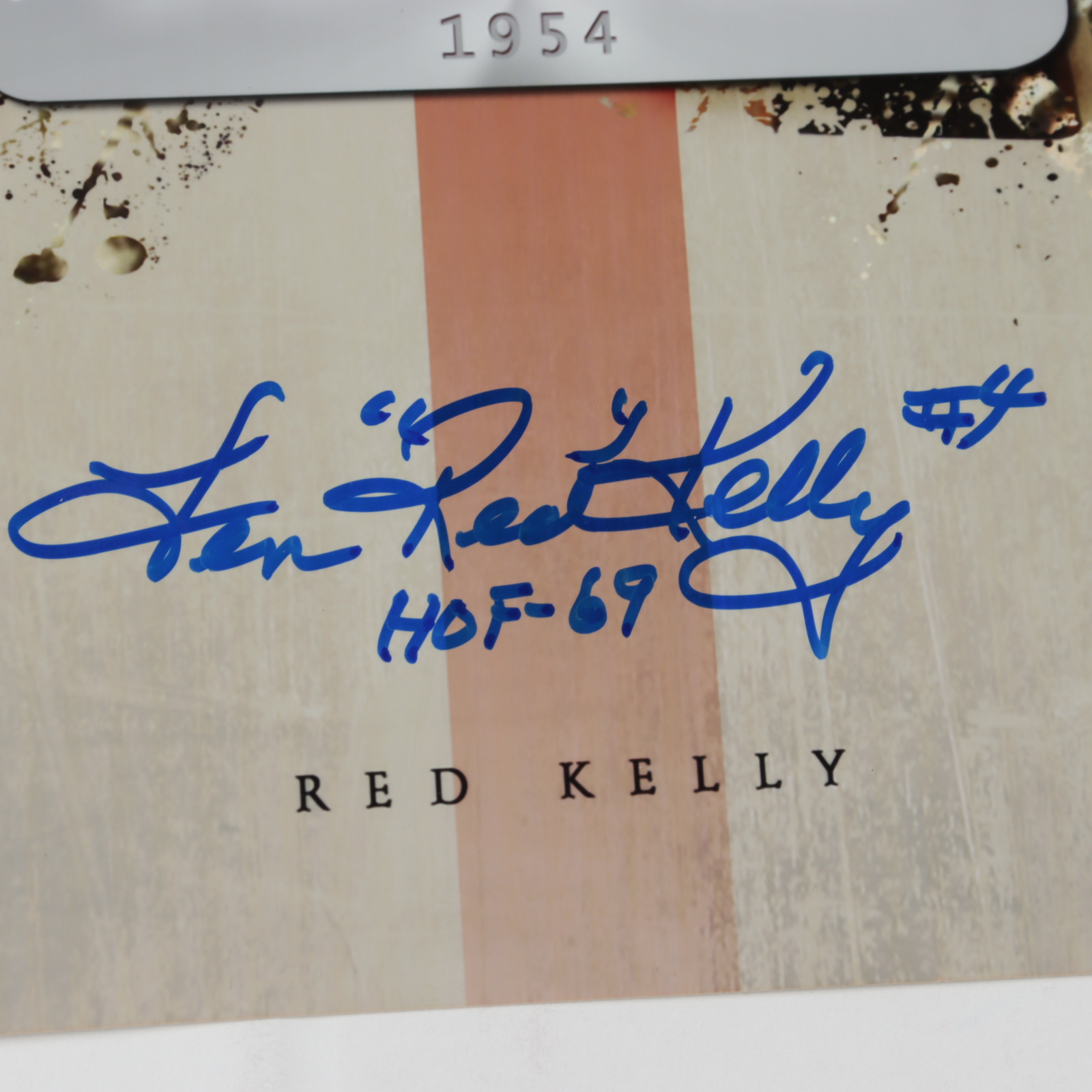Photo measures 16" x 20" in size and has been hand-signed by Pierre Pilote (D. 2017, Chicago Blackhawks, HOF), Red Kelly (D. 2019, Detroit Red Wings, HOF) and Harry Howell (D. 2019, New York Rangers, HOF).