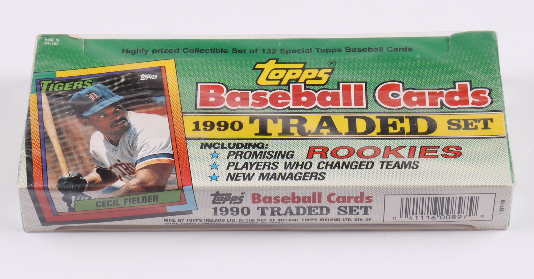 1990 Topps Traded Complete Set of (132) Baseball Cards. 1990 Topps Traded set which includes rookie cards from David Justice and John Olerud among others. Please note, the box shows signs of wear.