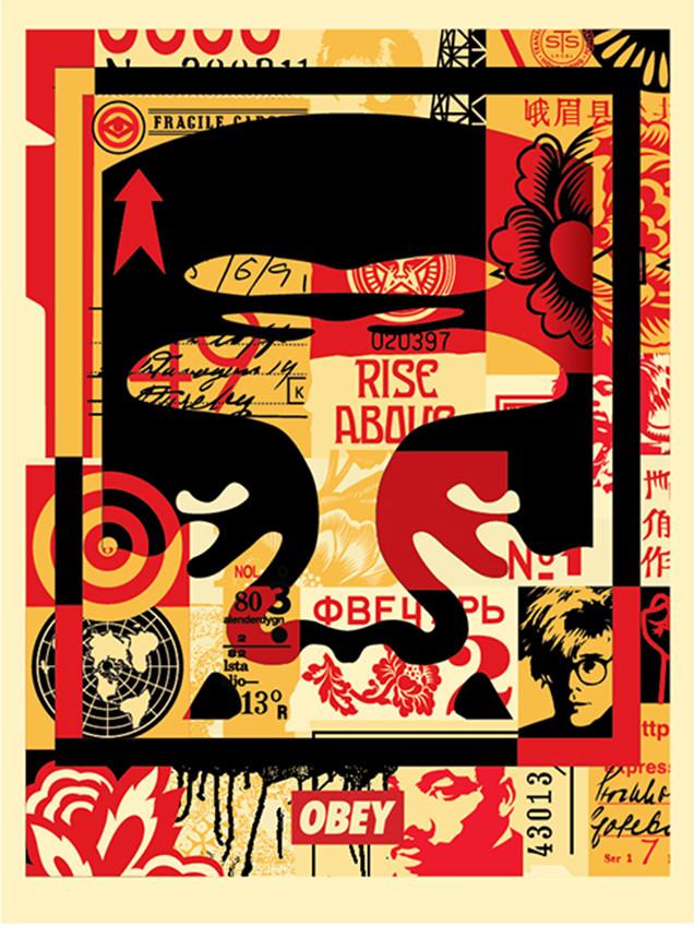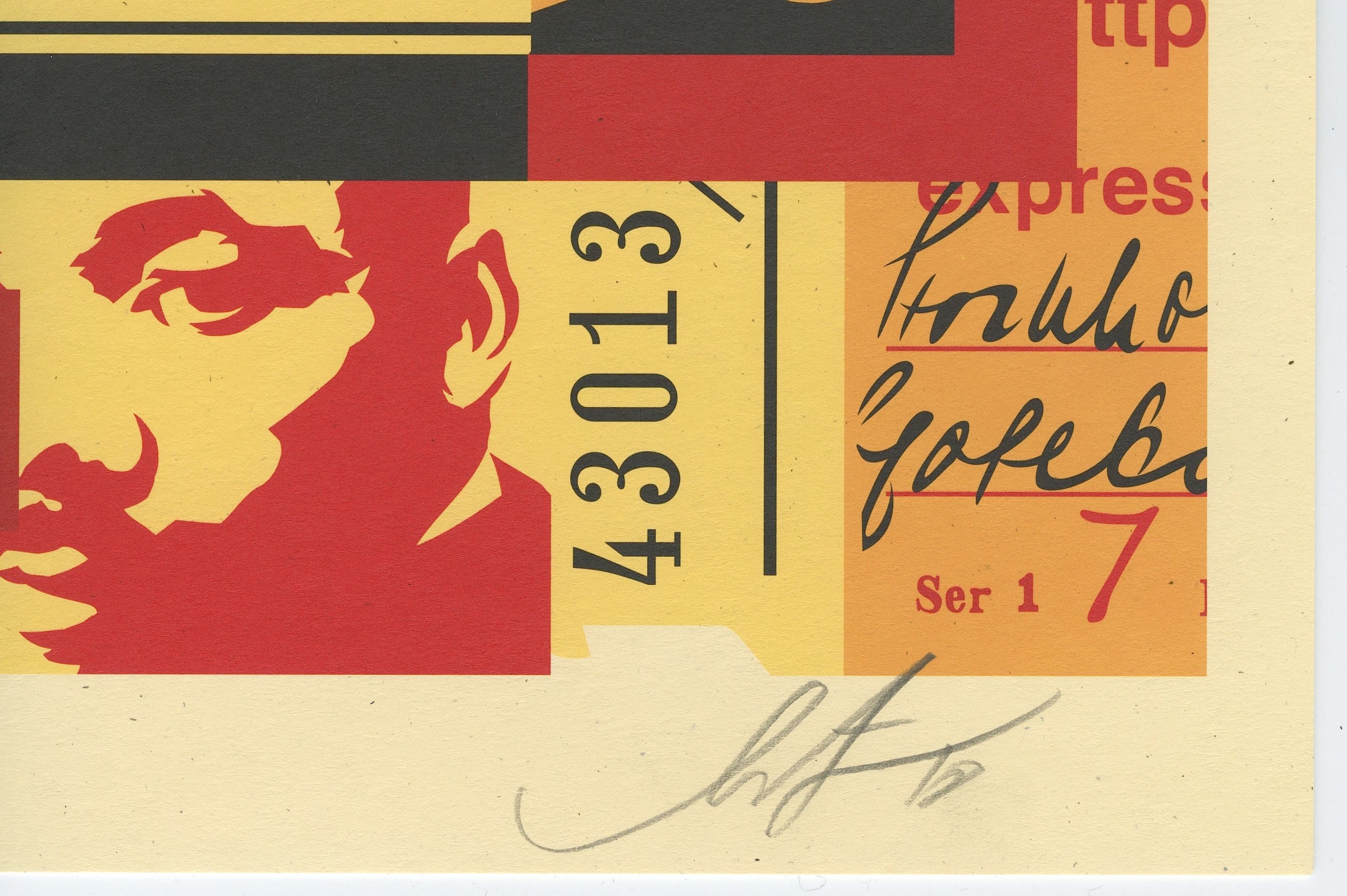 This piece measures approximately 18" x 24" in size and is hand-signed by renowned street artist, Shepard Fairey.