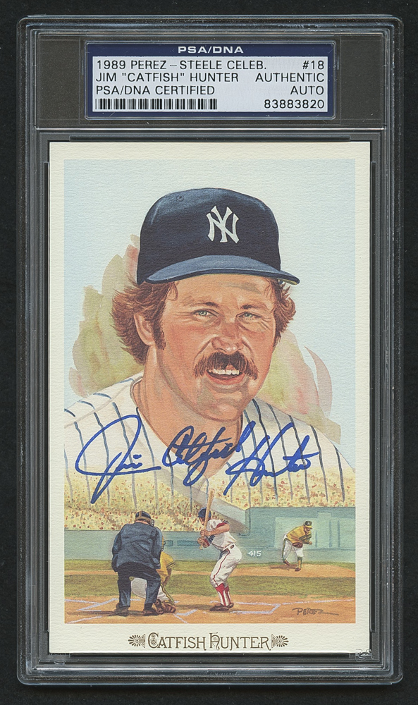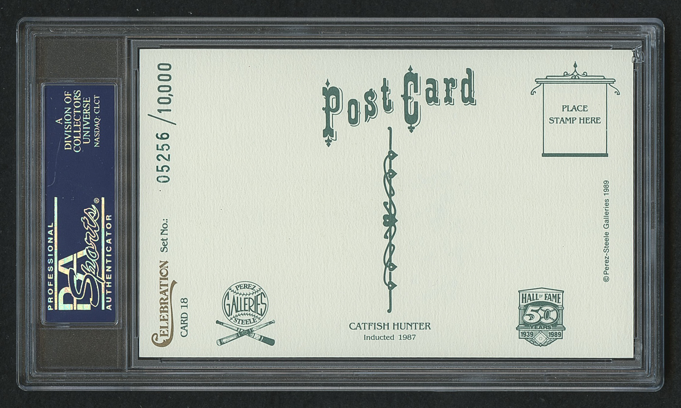 Jim "Catfish" Hunter Signed LE 1989 Perez Steele HOF Postcard (PSA Encapsulated)