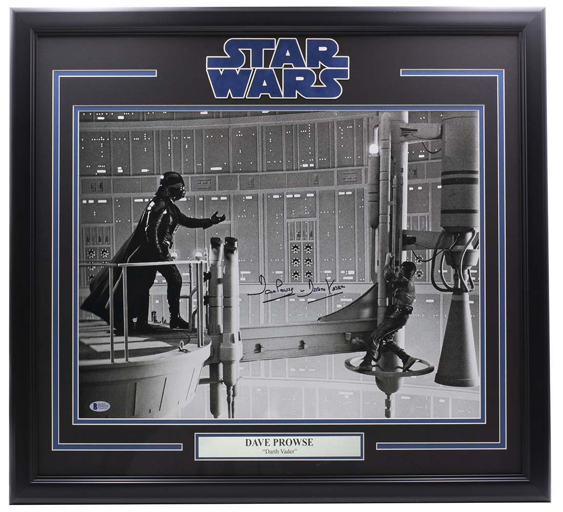 Custom frame measures 24" x 30" in size and features a photo that has been hand-signed by Dave Prowse.