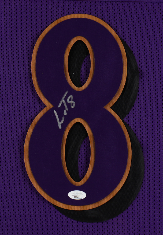Lamar Jackson Signed 35x43 Custom Framed Jersey Display (JSA Hologram) (See Description)