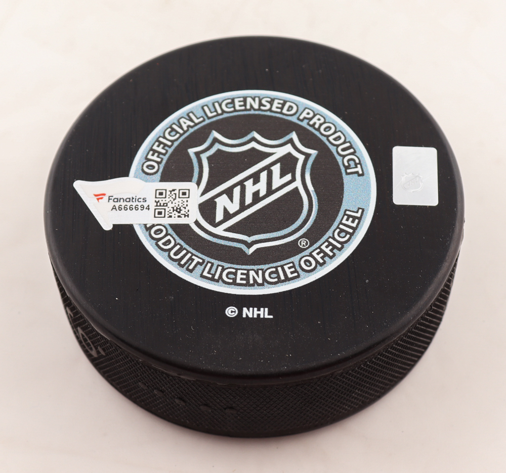 1900 NFL Draft logo hockey puck. Hand-signed by Martin Brodeur (New Jersey Devils, HOF).