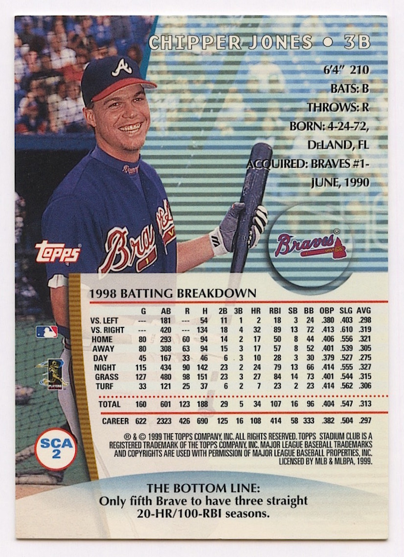 Chipper Jones 1999 Stadium Club Autographs #SCA2