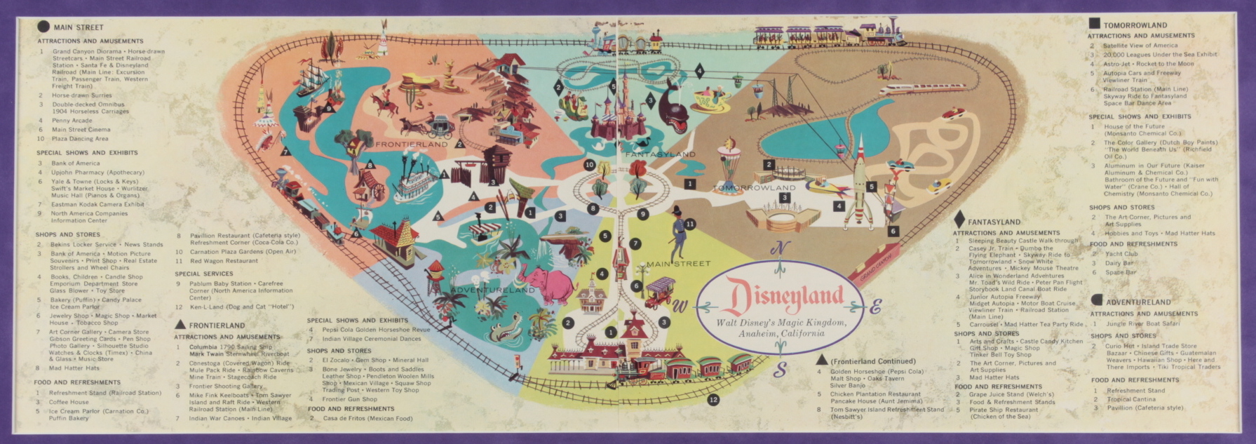 1962 Disneyland Map 16x26.5 Custom Framed Print Display with Vintage Ticket Booklet & Photo Portfolio