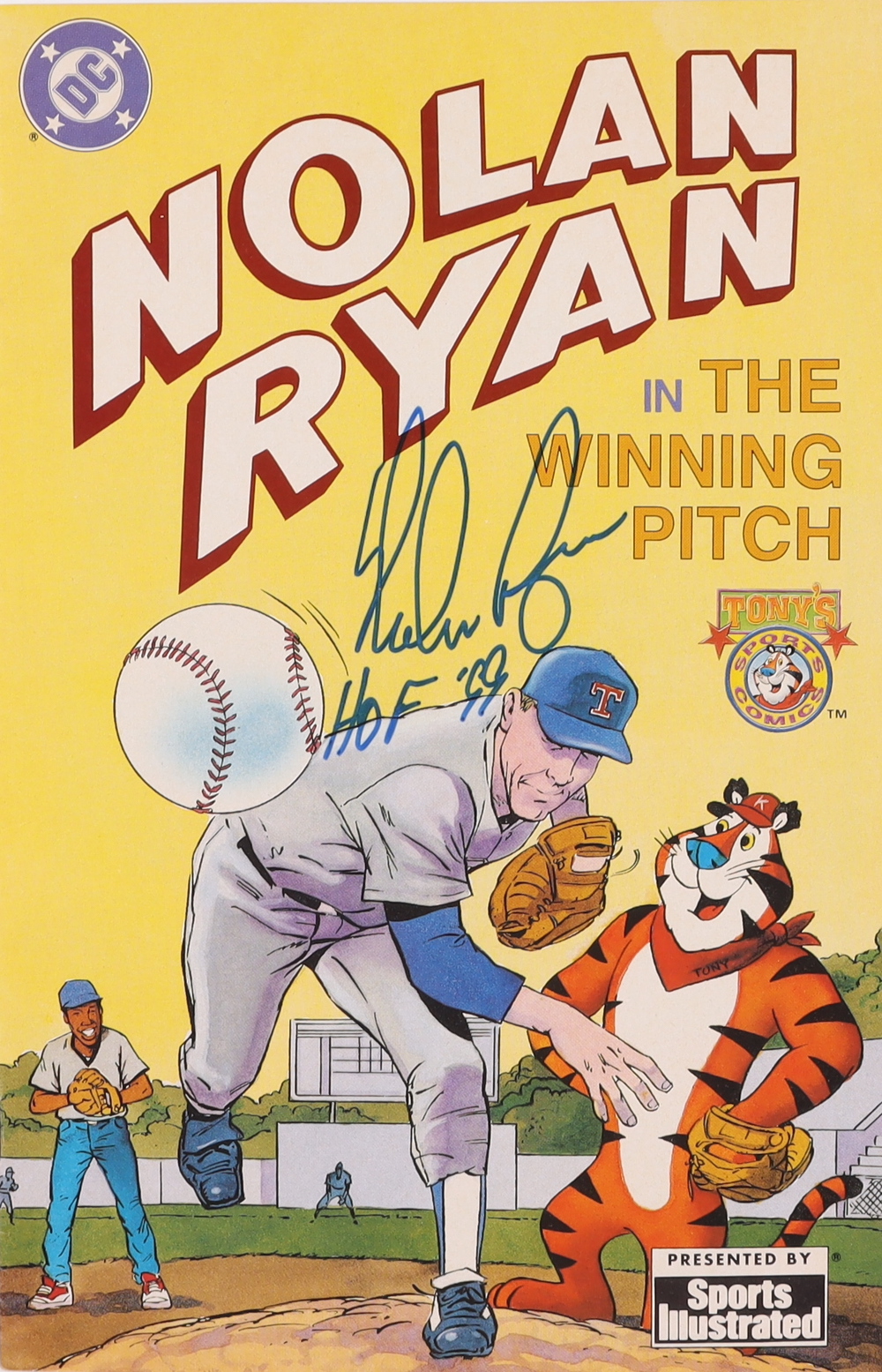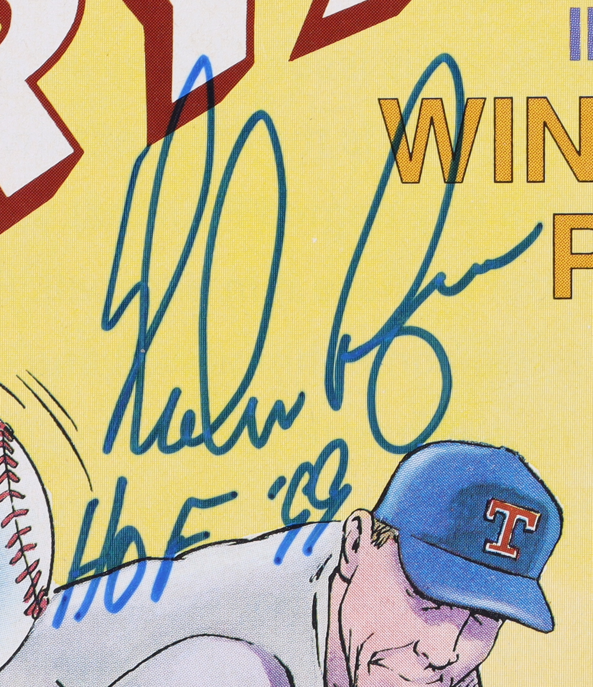 "The Winning Pitch" comic book has been hand-signed on the cover by Nolan Ryan (Texas Rangers, HOF).