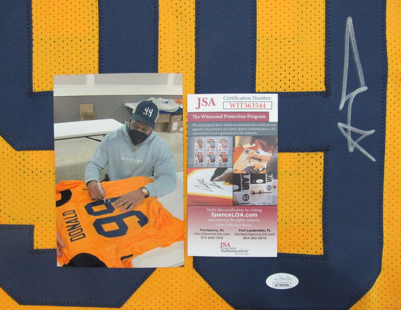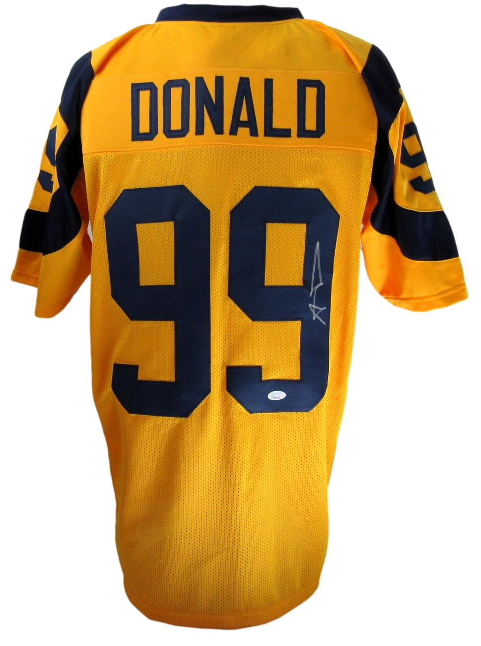 Custom on-field style jersey. Everything sewn on, size XL. Hand-signed by Aaron Donald.