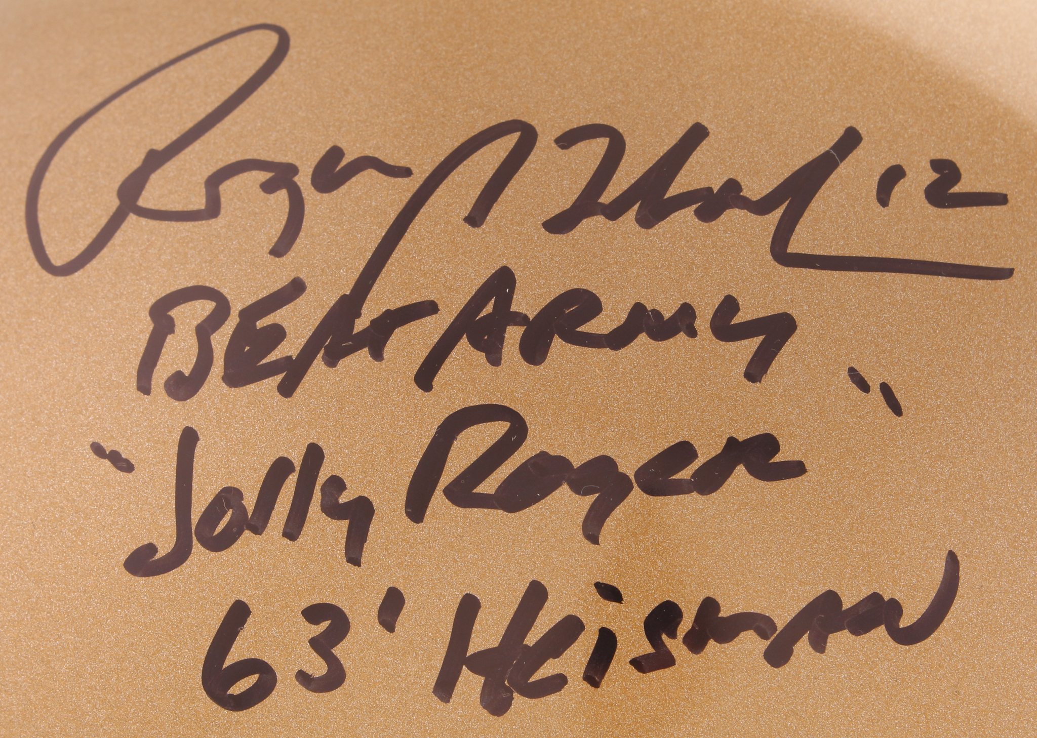 Navy Midshipmen replica suspension full-size helmet. Hand-signed and inscribed by Roger Staubach (HOF).