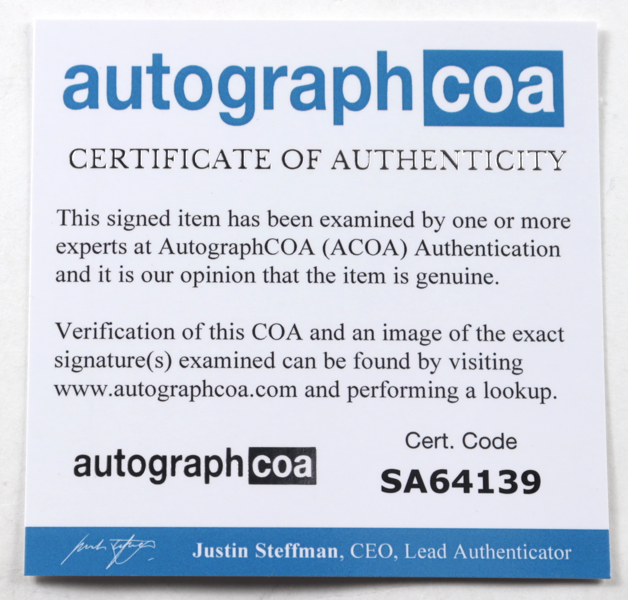 Authentication: AutographCOA COA