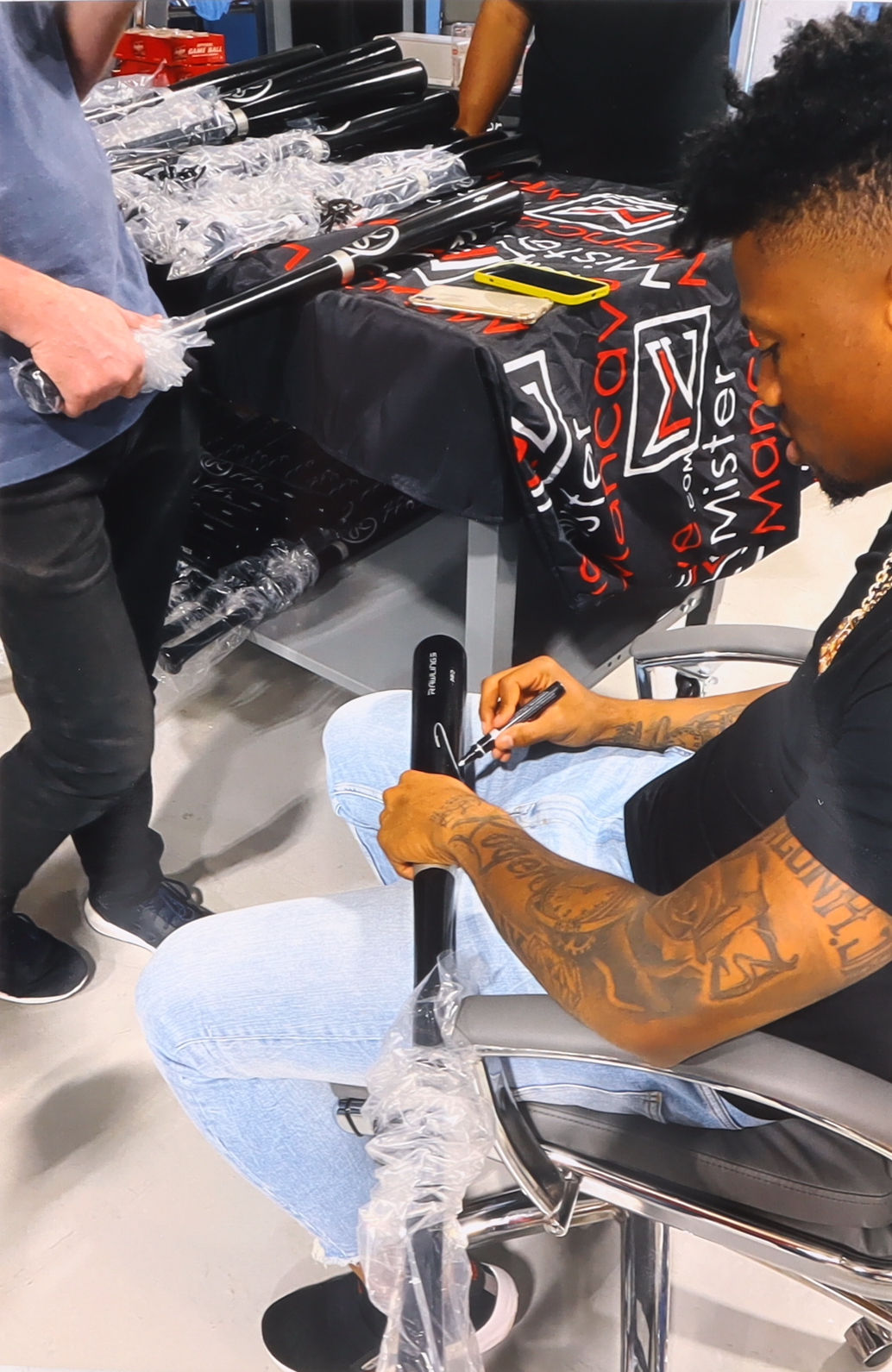 Rawlings Pro baseball bat has been hand-signed by Ronald Acuna Jr. (Atlanta Braves).