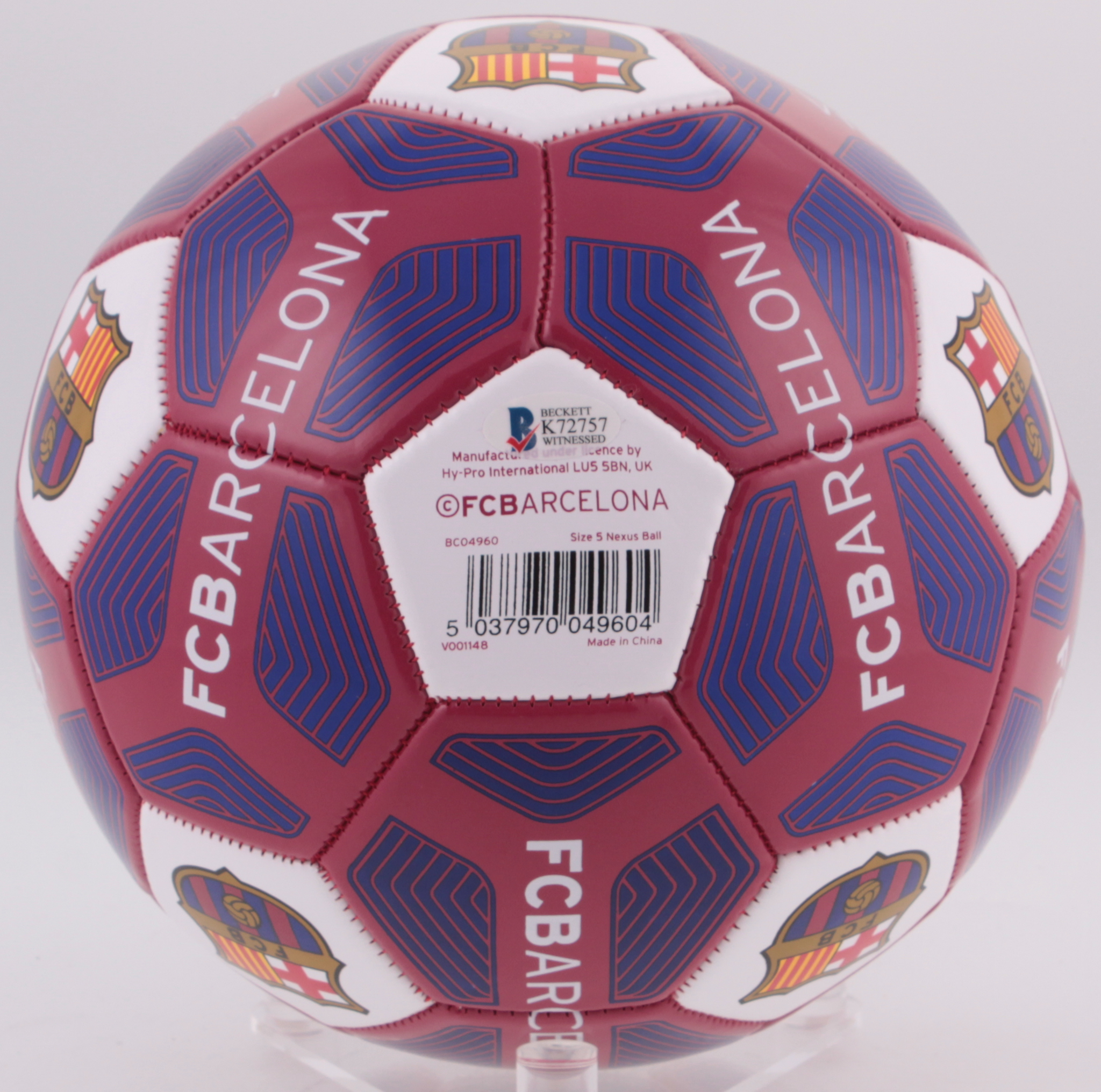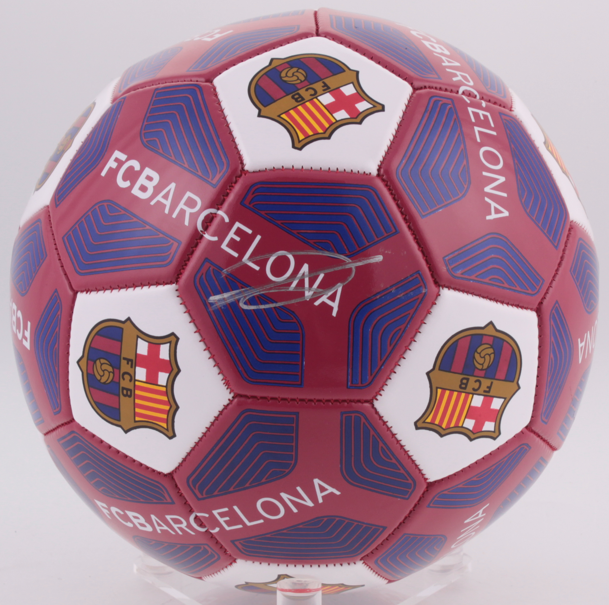 FC Barcelona logo soccer ball. Hand-signed by Ousmane Dembele.
