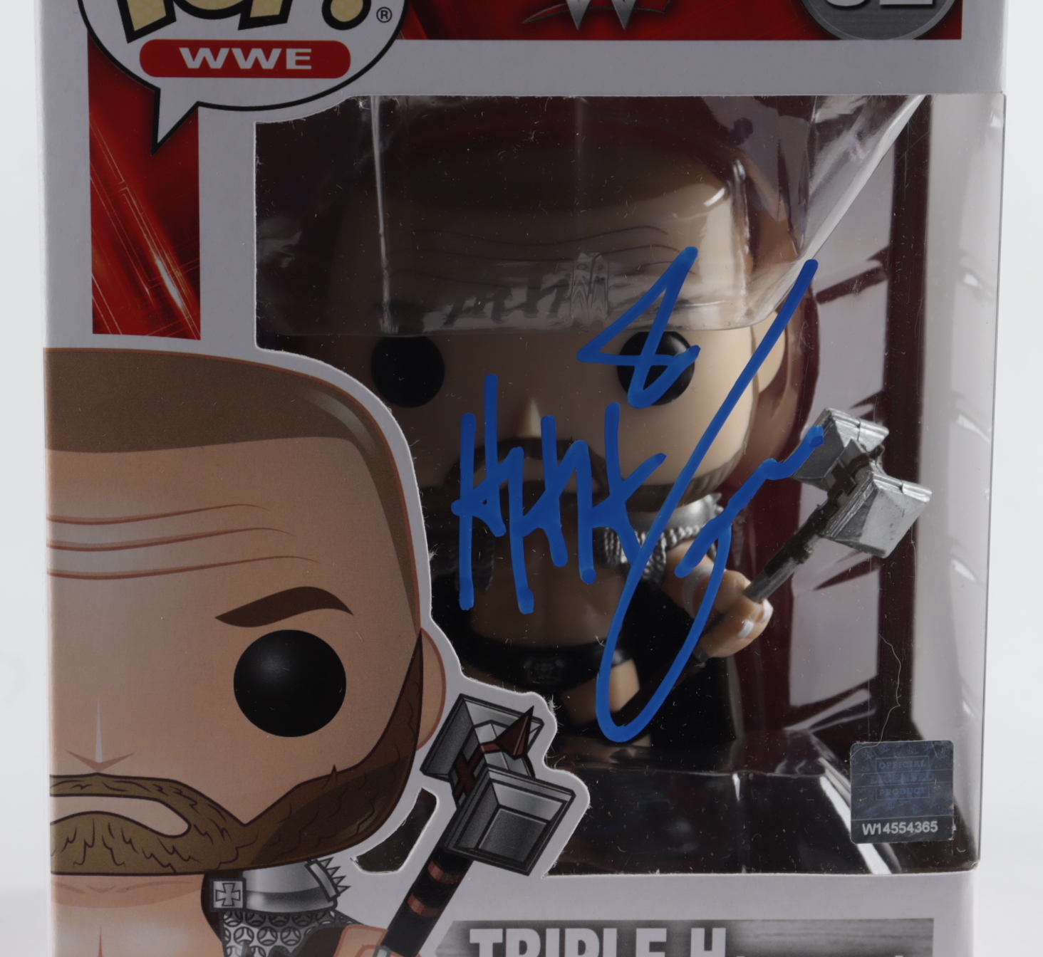 Funko Pop! Vinyl Figure measures approximately 4" in height. Packaging has been hand-signed by Triple H.