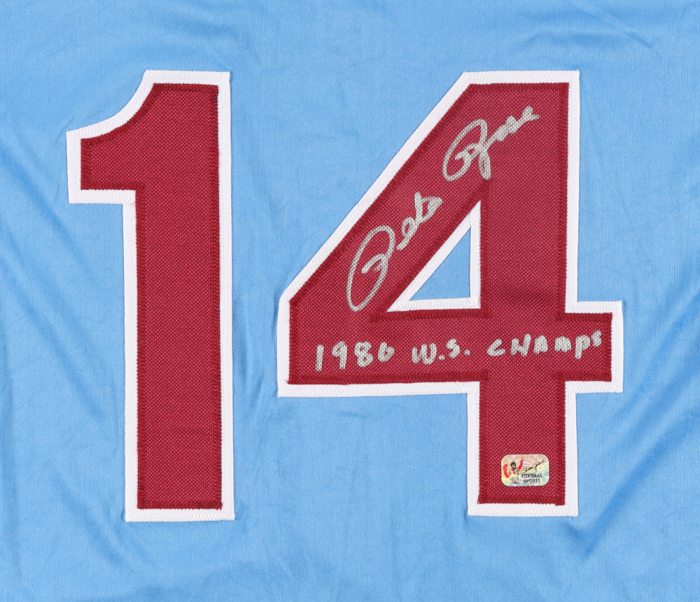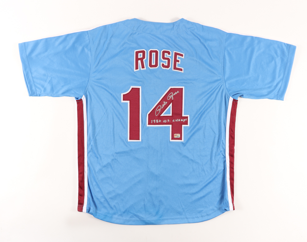 Pete Rose Signed Jersey Inscribed "1980 W.S. Champs" (Rose Hologram)