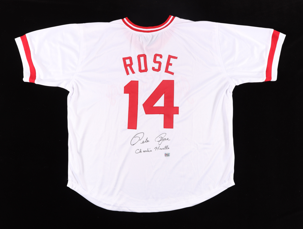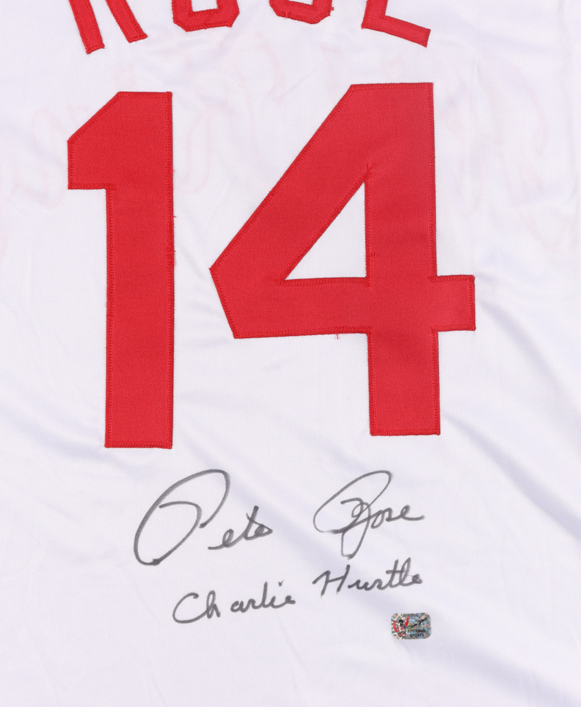 Pete Rose Signed Jersey Inscribed "Charlie Hustle" (Rose Hologram)
