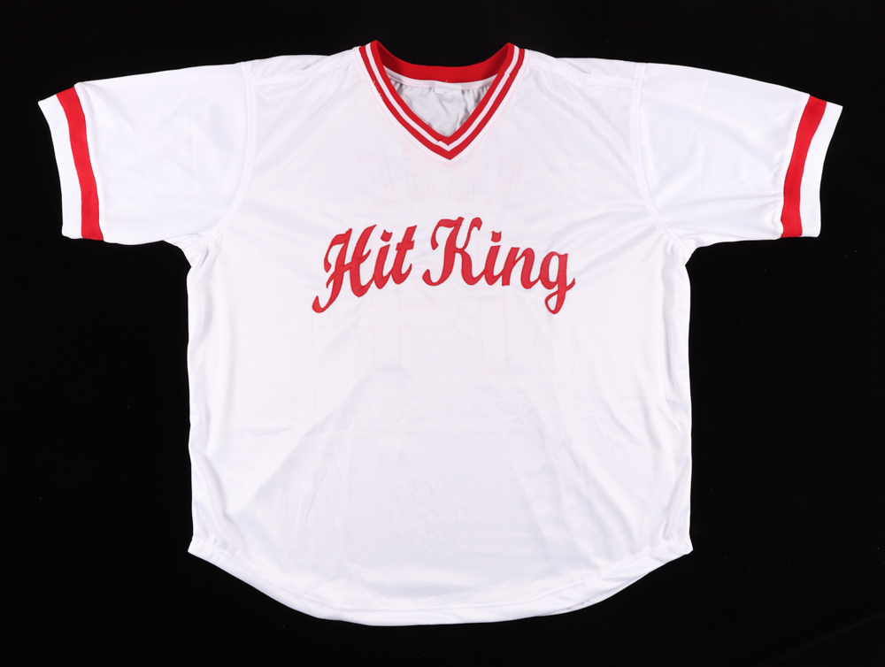 Custom on-field style jersey. Everything is sewn on, size XL. Has bene hand-signed by Pete Rose.