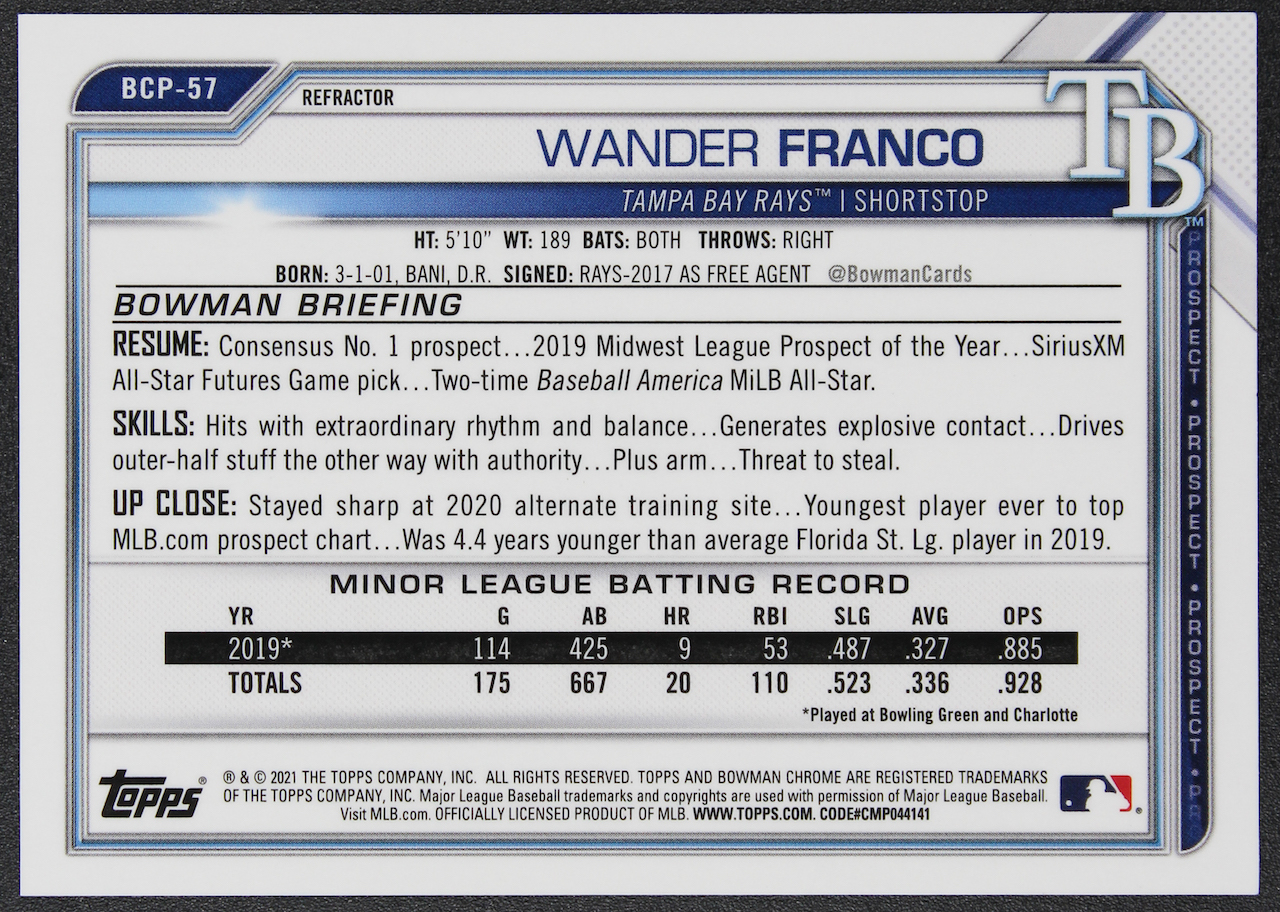 Wander Franco 2021 Bowman Chrome Prospects #BCP57 RC #075/499