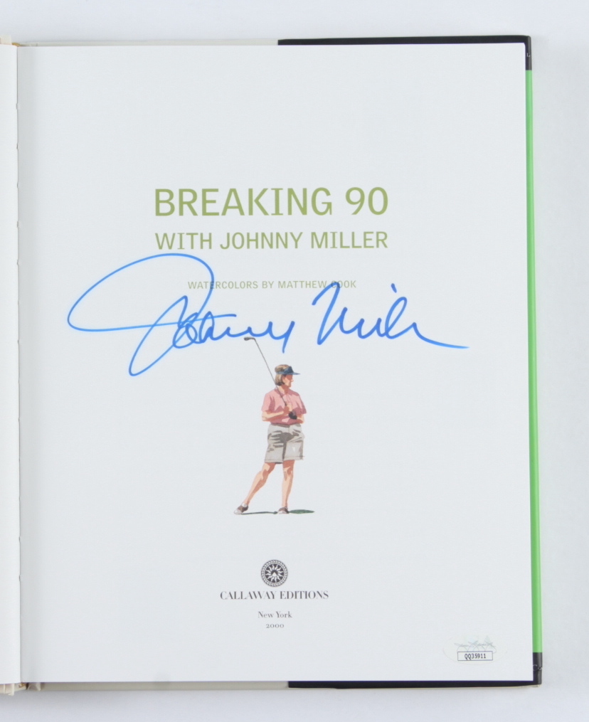 "Breaking 90 With Johnny Miller" Hardcover book is hand-signed on the inside cover page by Johnny Miller (HOF).