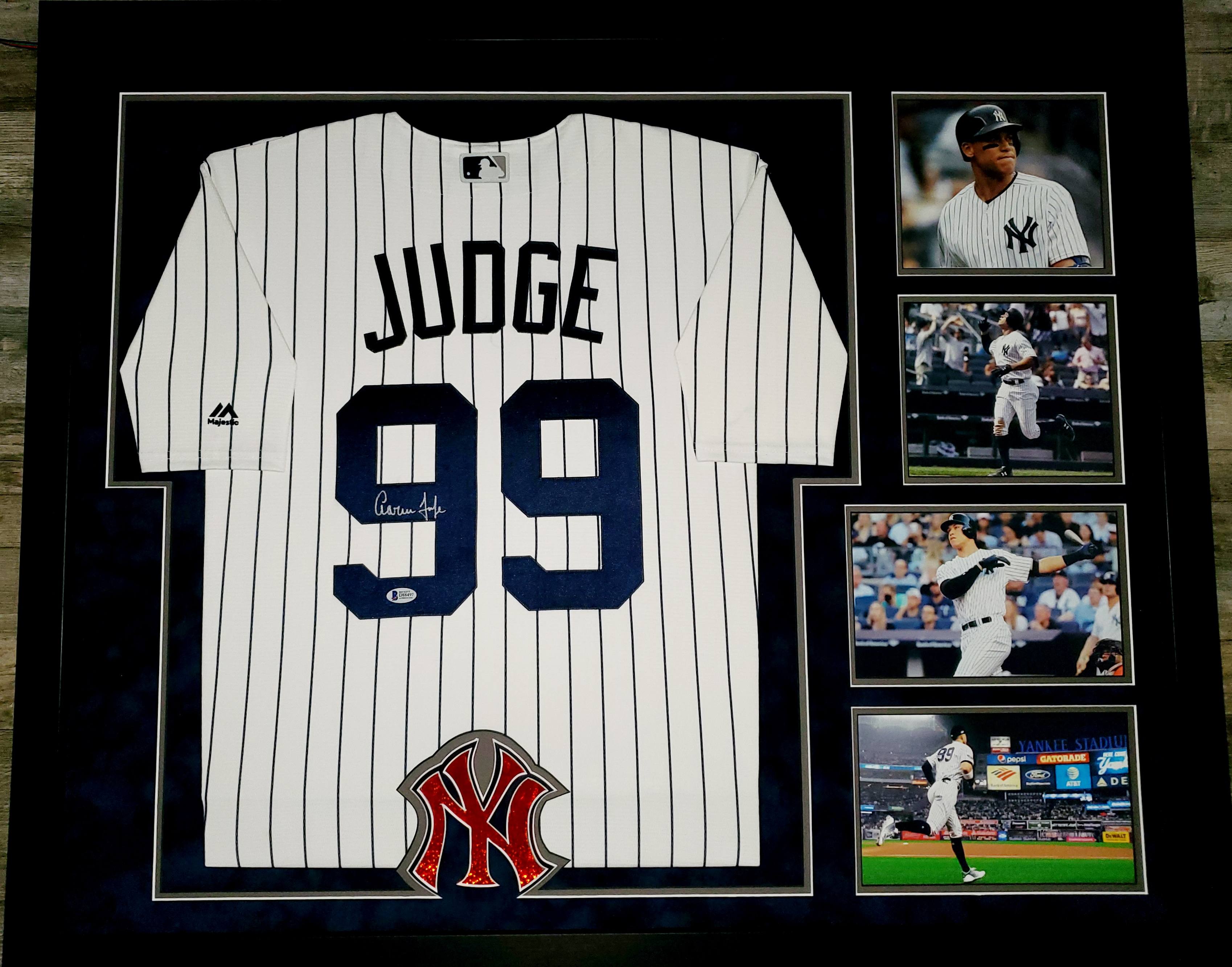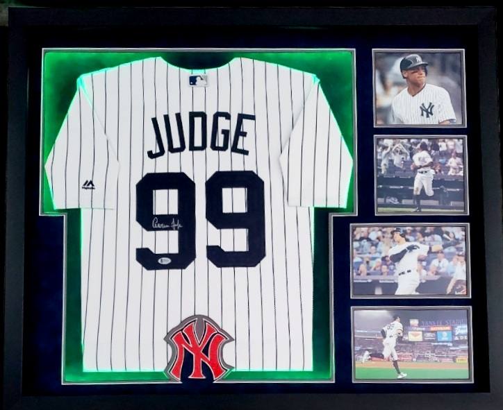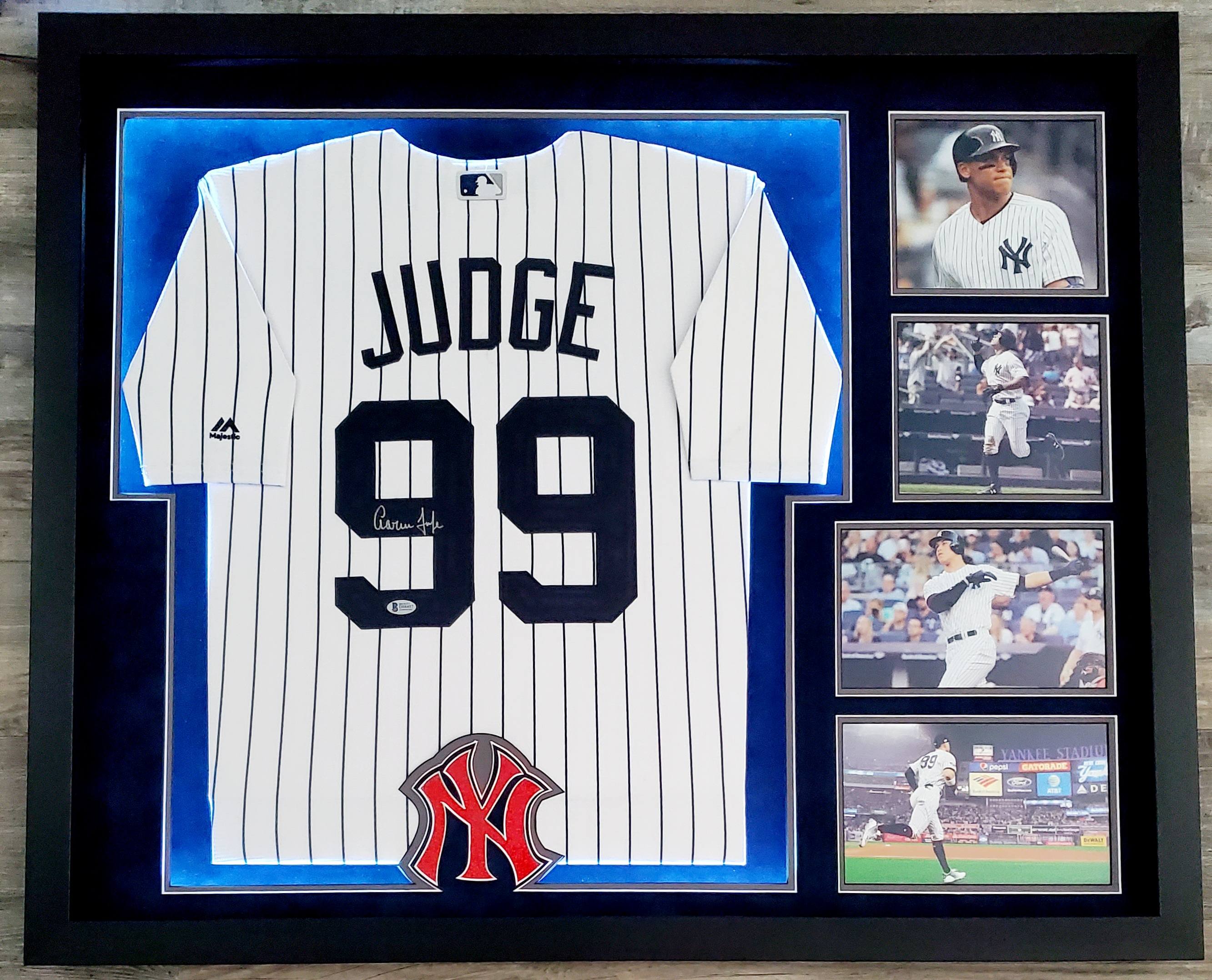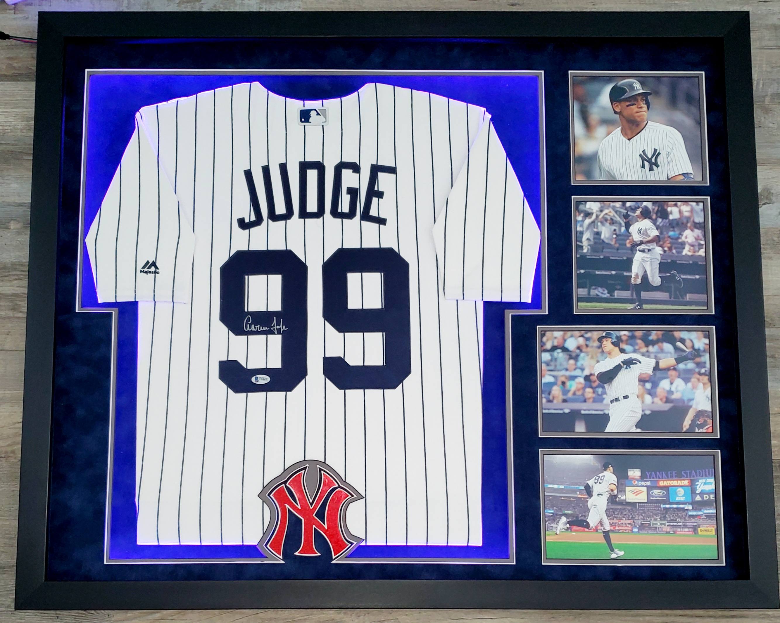 Aaron Judge Signed Yankees 33x44 Custom Framed Majestic Jersey Display with LED Lights (Beckett Hologram)