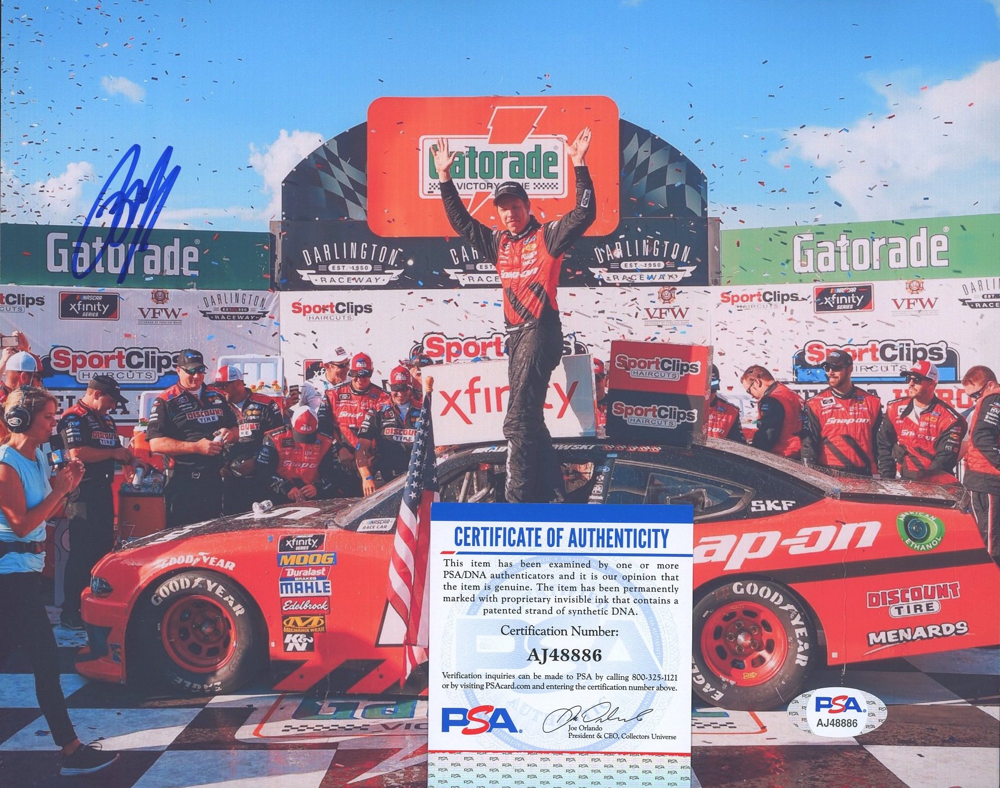 Photo measures 8" x 10" in size and has been hand-signed by Brad Keselowski.