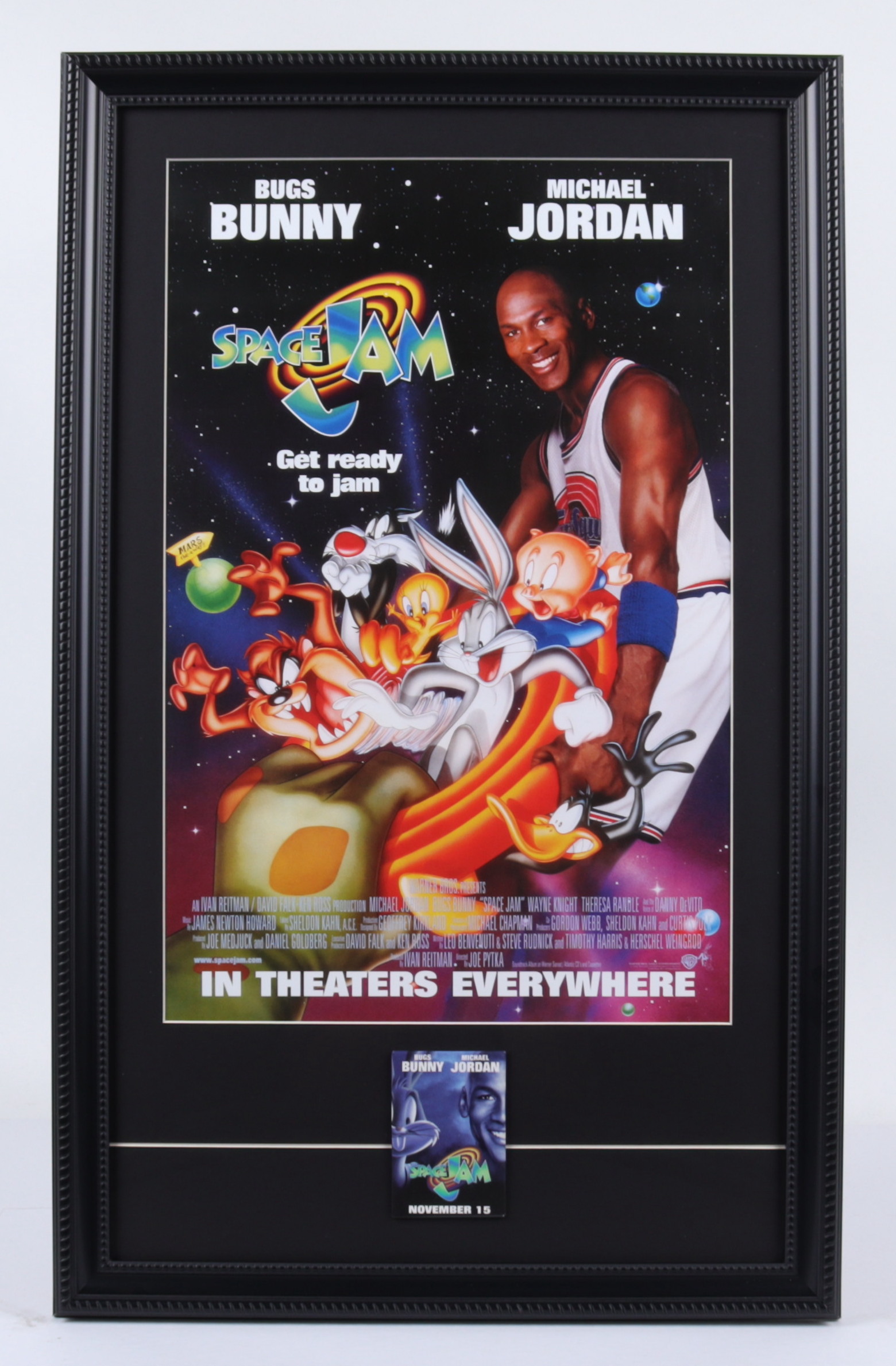 Space Jam 15x24 Custom Framed Movie Poster Display with Vintage Pre Movie Release Pin