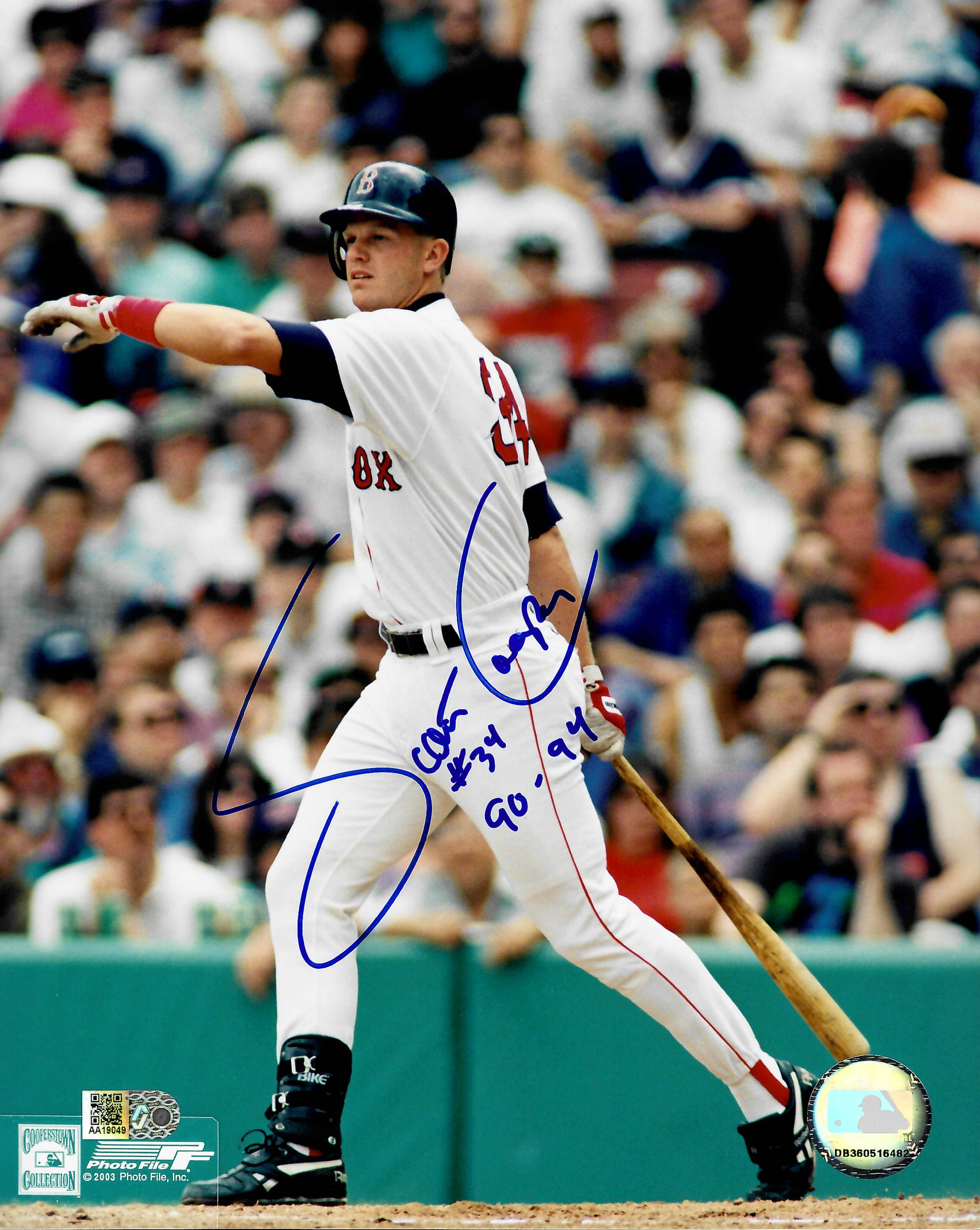Photo measures 8" x 10" in size and has been hand-signed and inscribed by Scott Cooper (Boston Red Sox).