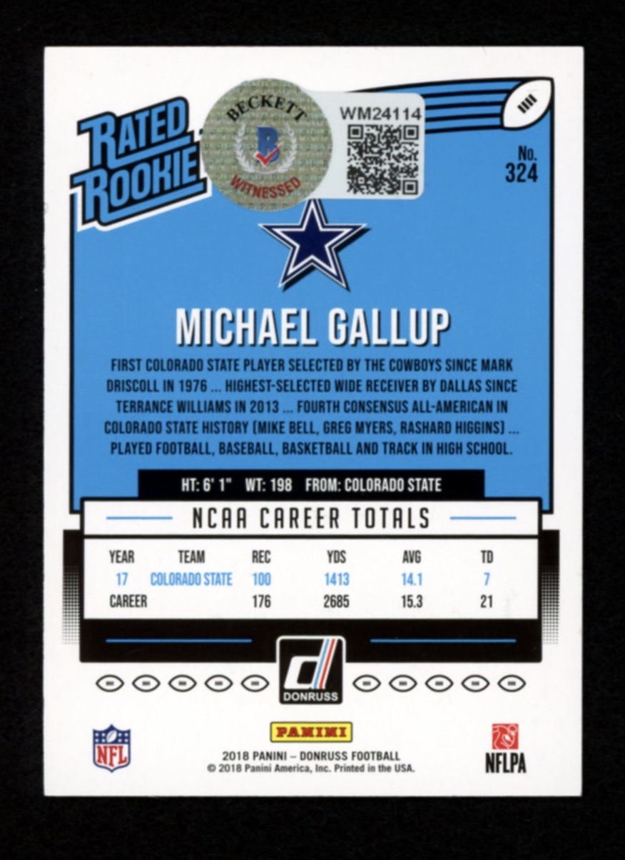 Michael Gallup Signed 2018 Donruss #324 RR RC (Beckett Hologram)