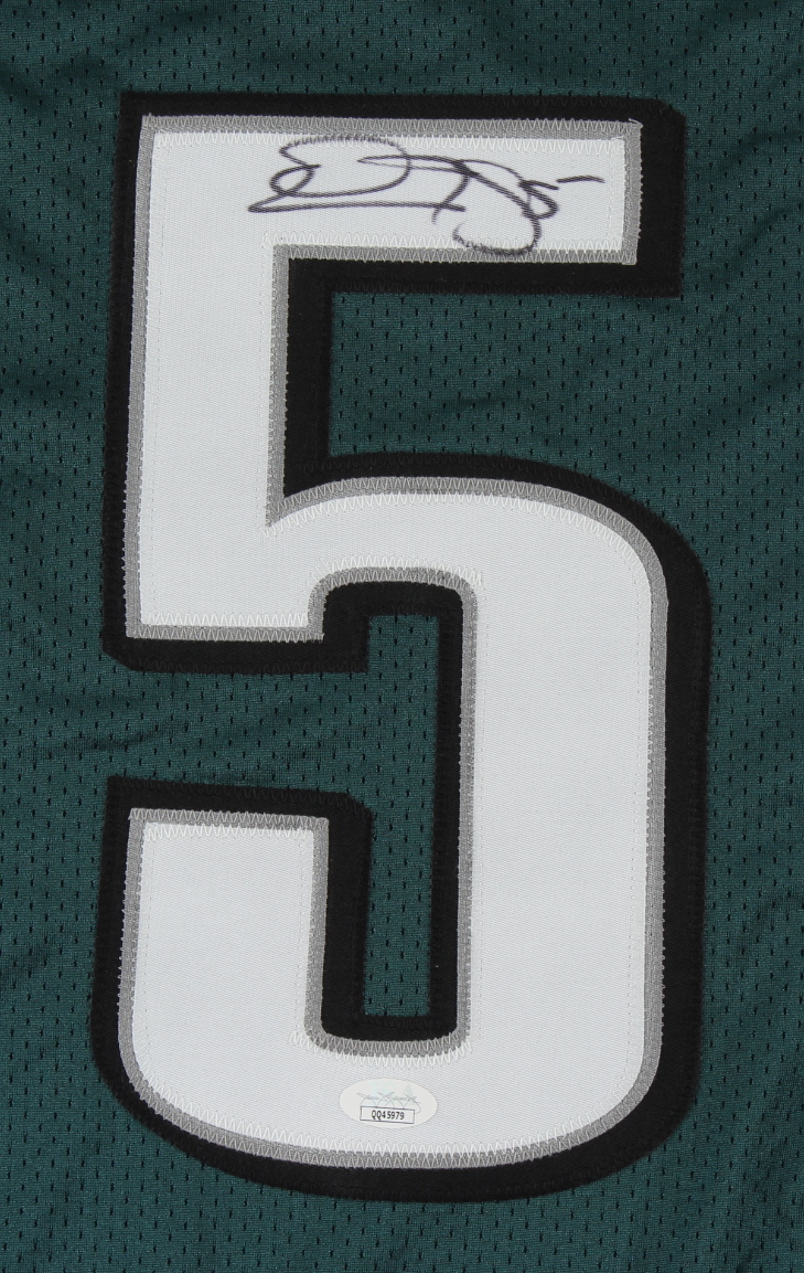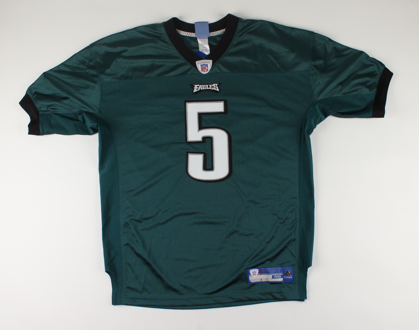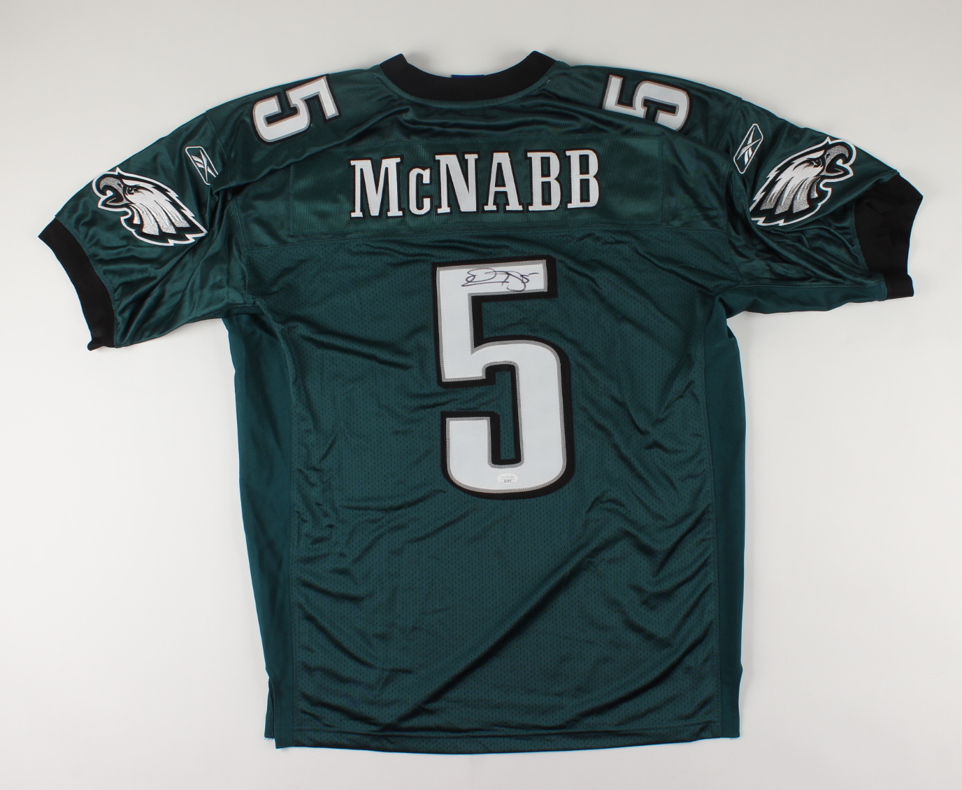 Reebok on-field style jersey. Everything sewn on, size 48. Hand-signed by Donovan McNabb (Philadelphia Eagles).