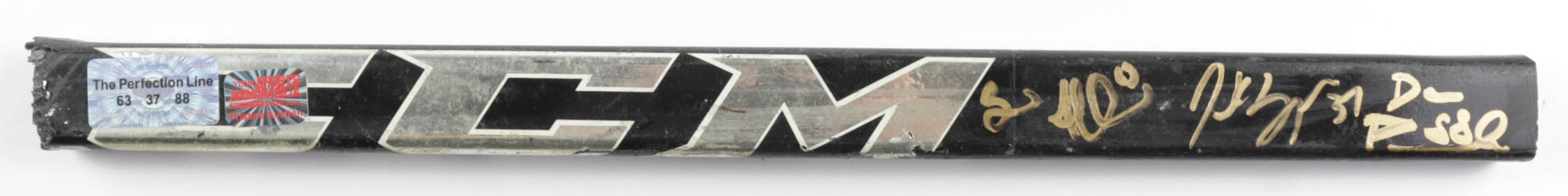 Hockey stick shaft piece has been hand-signed by Brad Marchand, Patrice Bergeron and David Pastrnak (Boston Bruins). Please note, stick shows signs of wear.