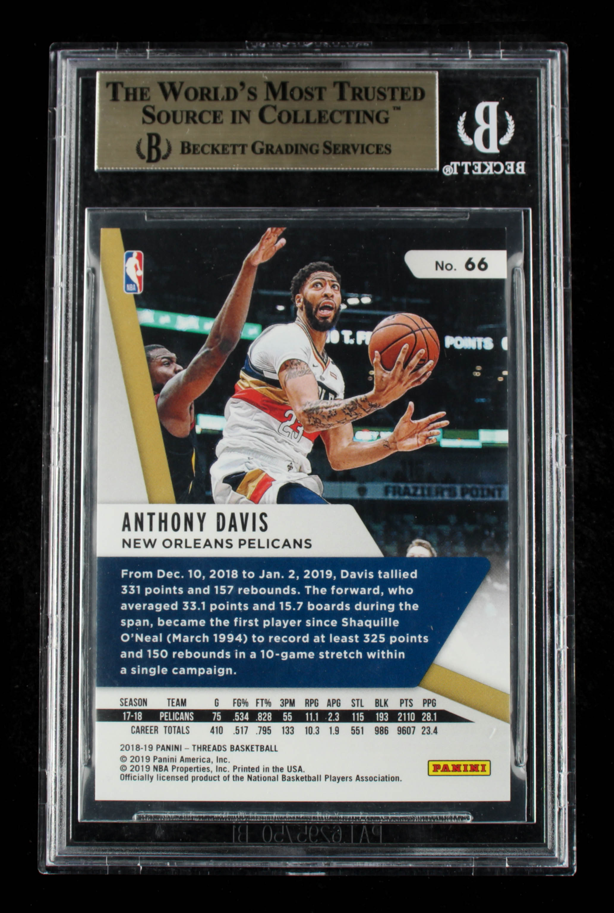 Anthony Davis 2018-19 Panini Threads Premium Gold #66 #7/10 (BGS 9.5)
