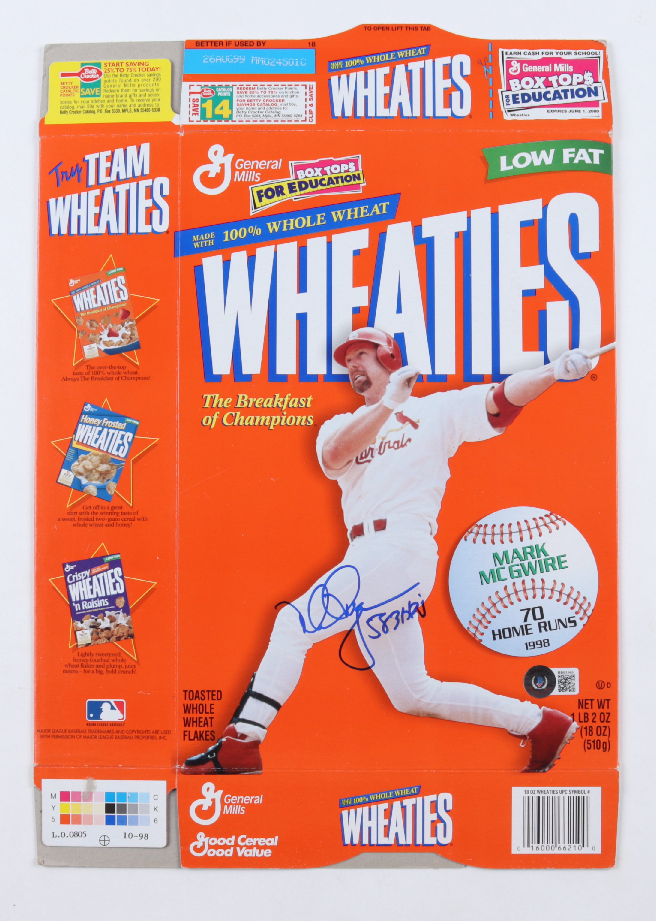 General Mills Wheaties cereal box has been hand-signed by Mark McGwire (St. Louis Cardinals)