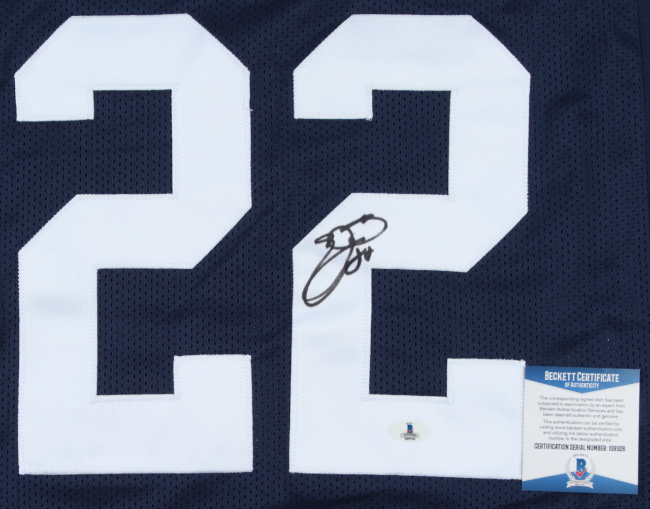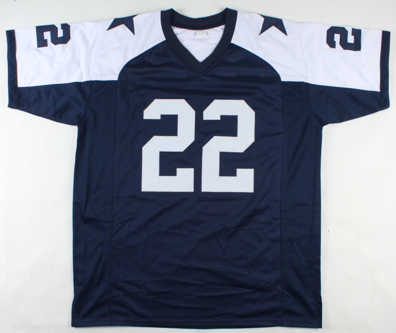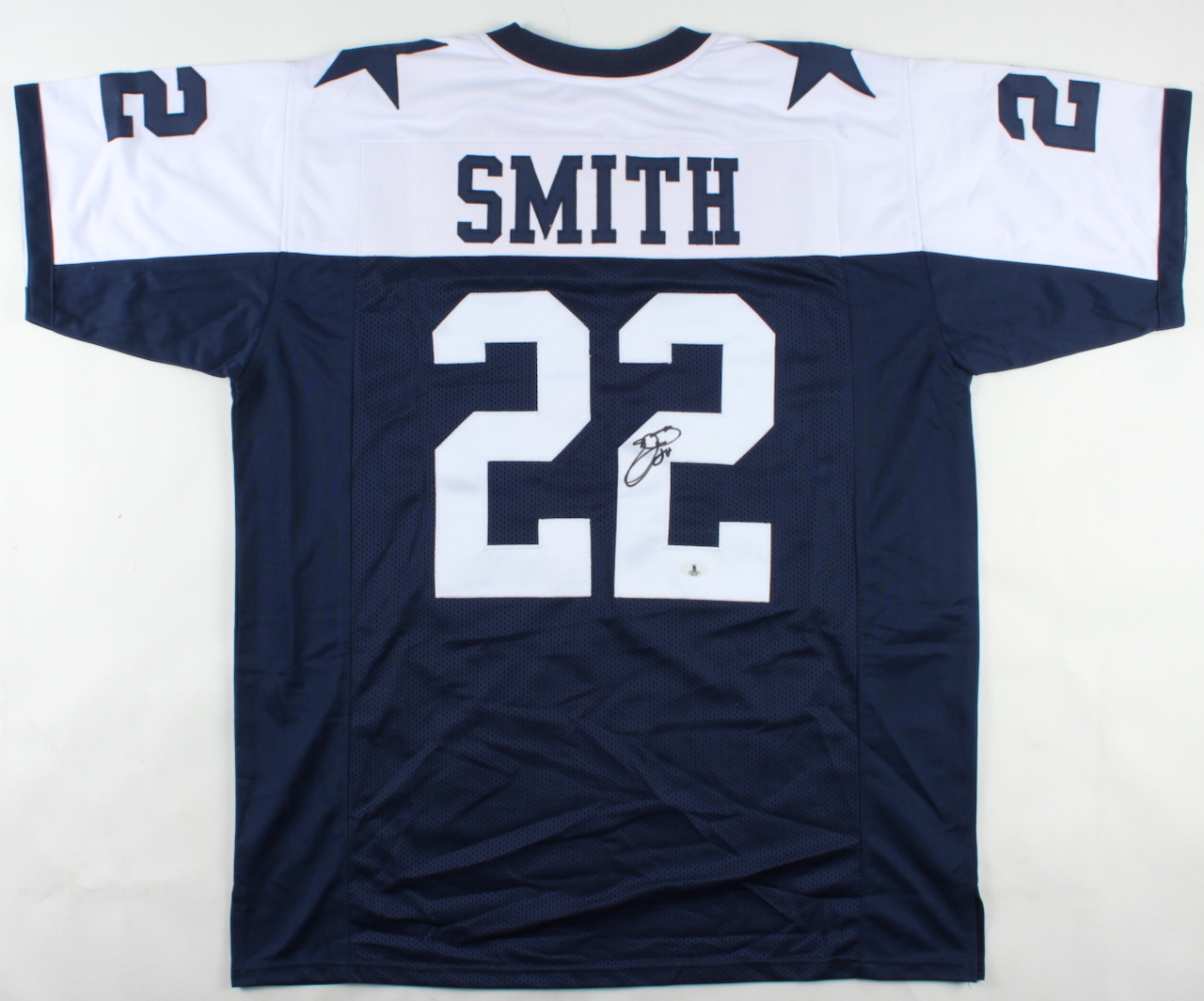 Custom on-field style jersey. Everything sewn on, size XL. Hand-signed by Emmitt Smith (HOF).
