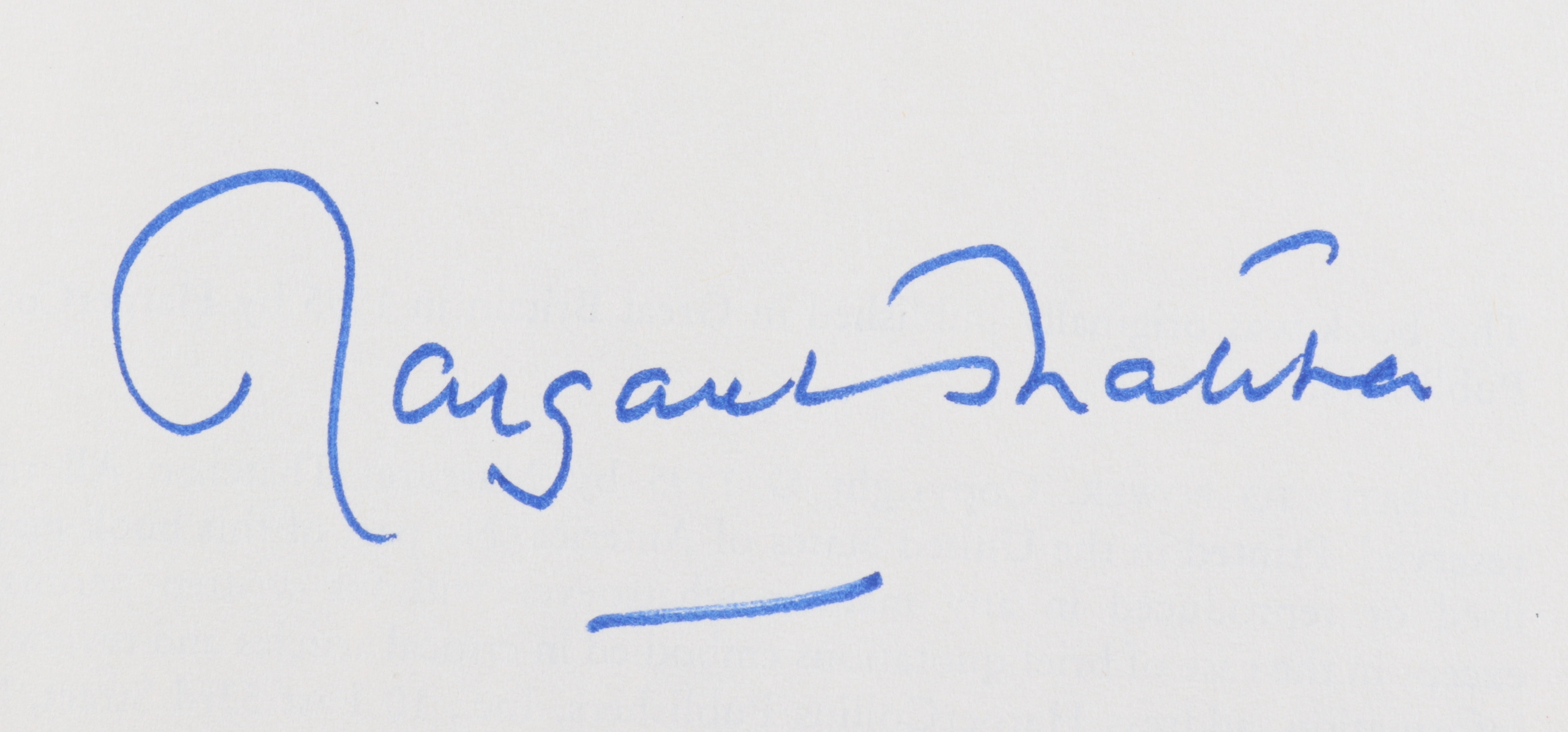 Hardcover book is hand-signed on the inside title page by Margaret Thatcher (D. 2013).