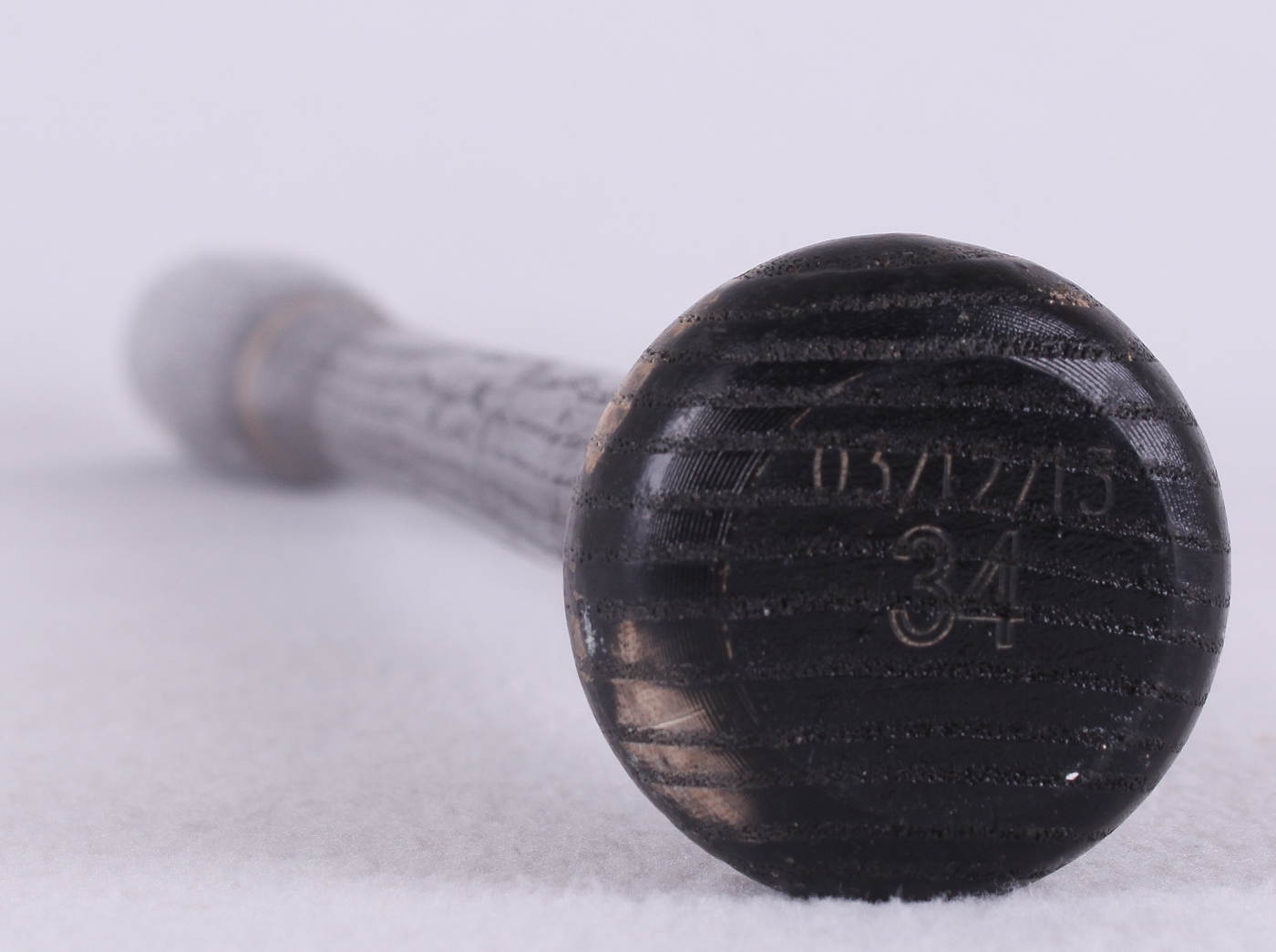 Rawlings Big Stick Bone Rubbed Baseball Bat. Hand-signed in silver paint pen by Aaron Judge (Yankees). The bat has been game-used and cracked by an unknown player.