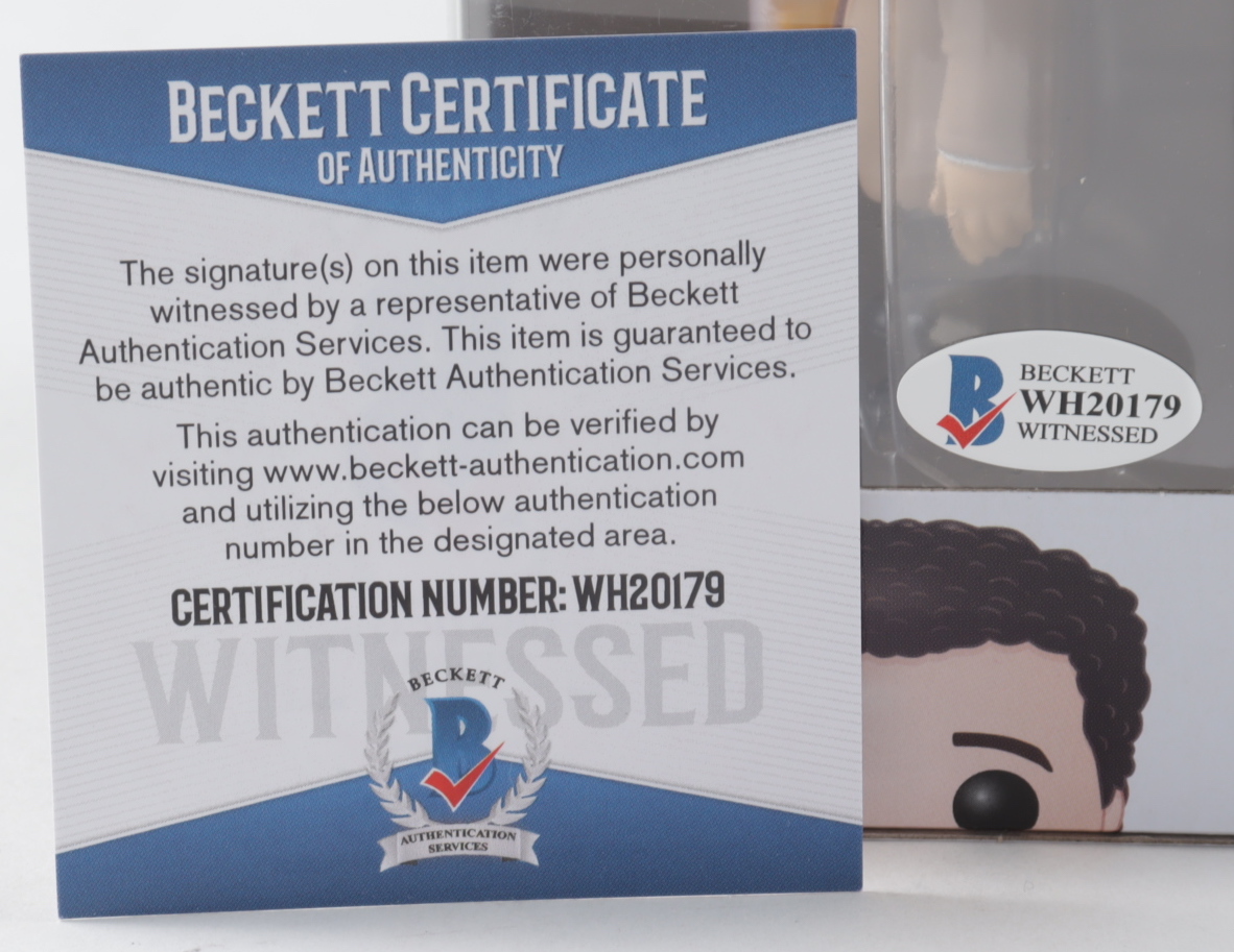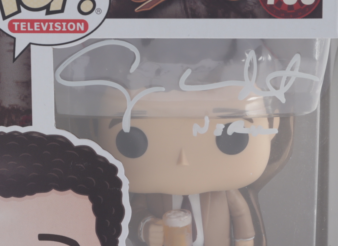 Funko Pop! figure measures approximately 4" tall and the packaging has been hand-signed by George Wendt. Please note, the box shows signs of wear.