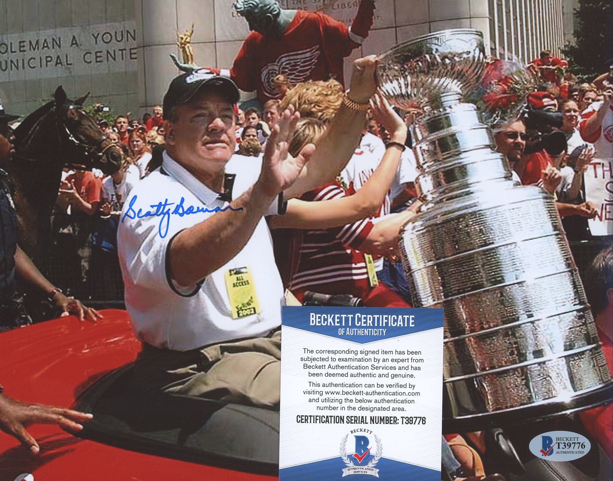 Photo measures 8" x 10" in size and has been hand-signed by Scotty Bowman (Detroit Red Wings, HOF).