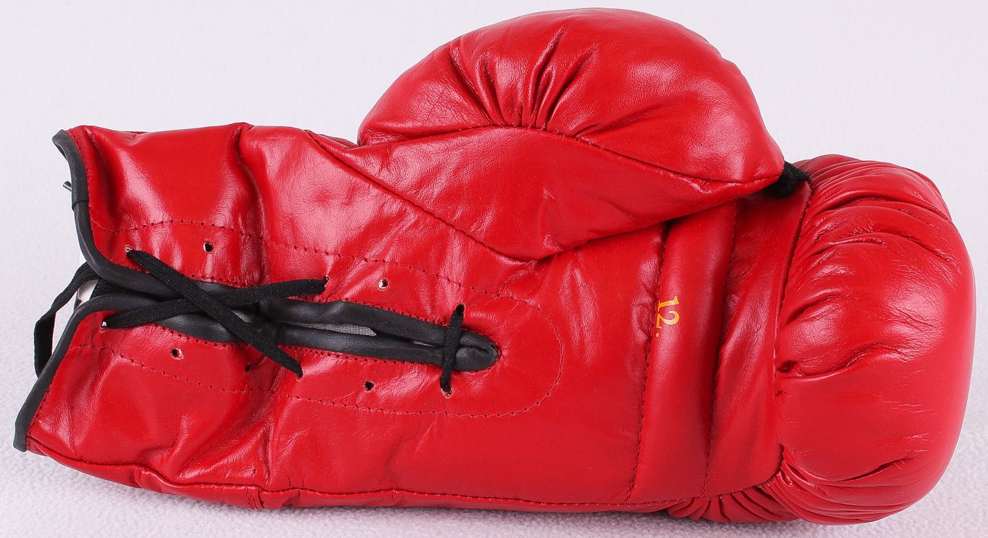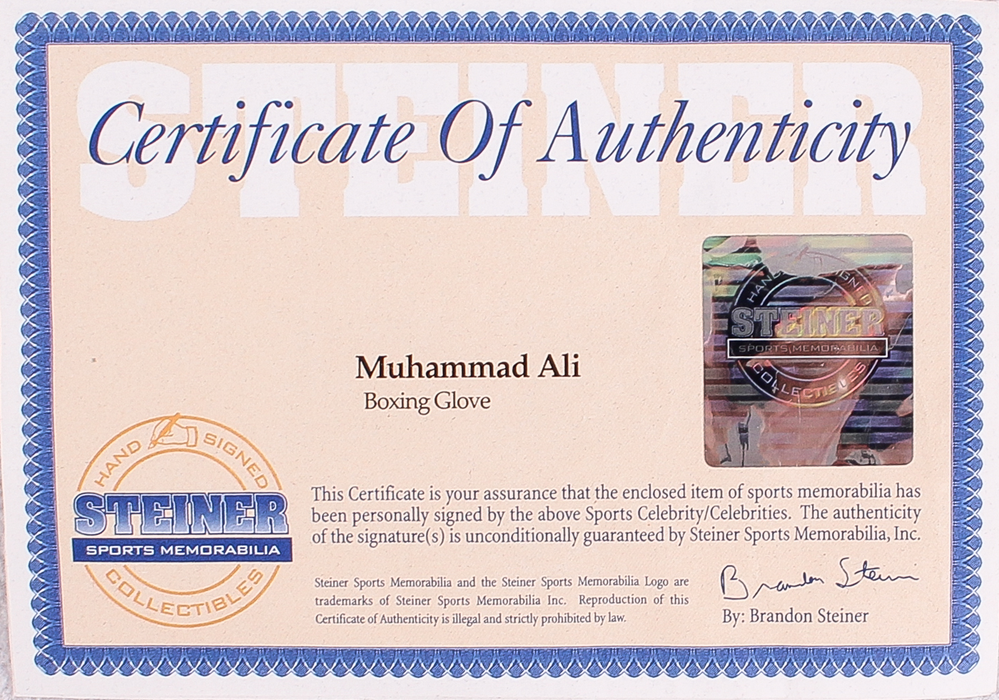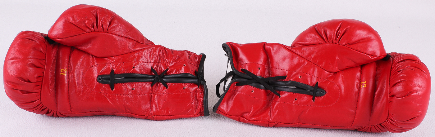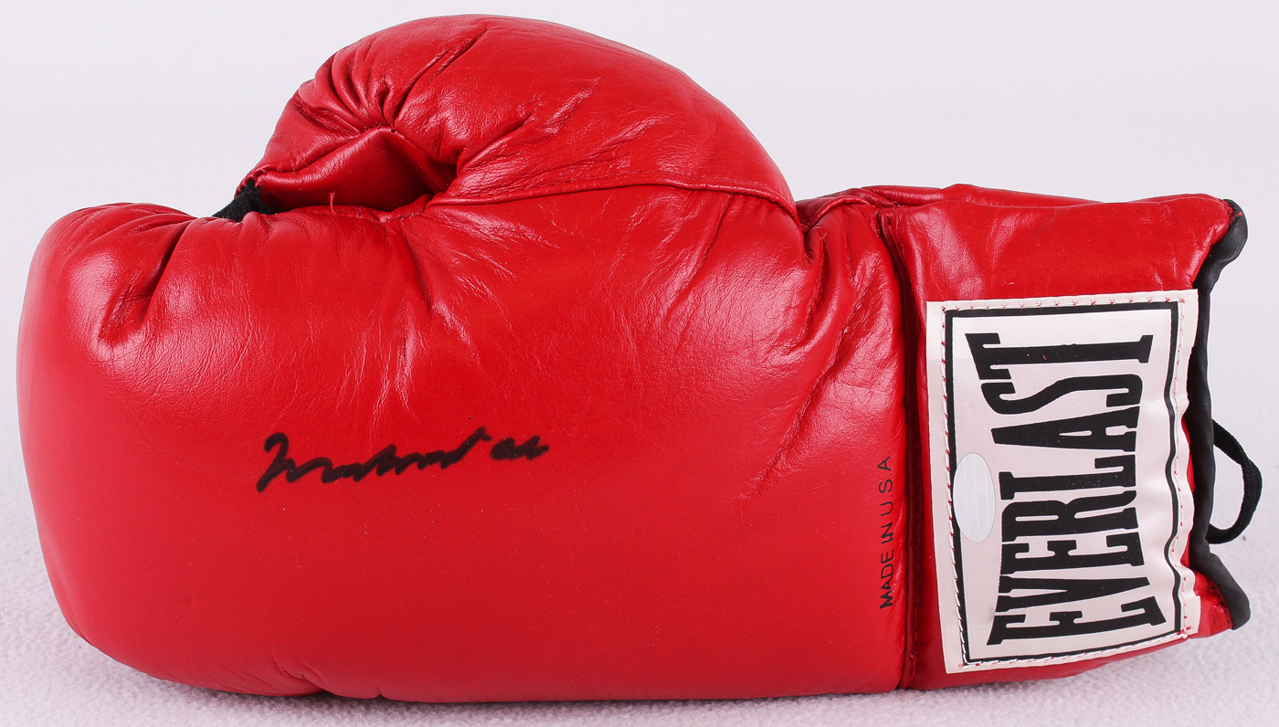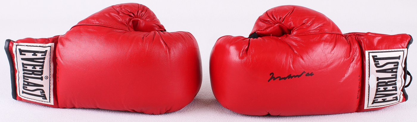 Pair of (2) Everlast boxing gloves. Left glove has been hand-signed in black felt-tip pen by Muhammad Ali (Boxing HOF).