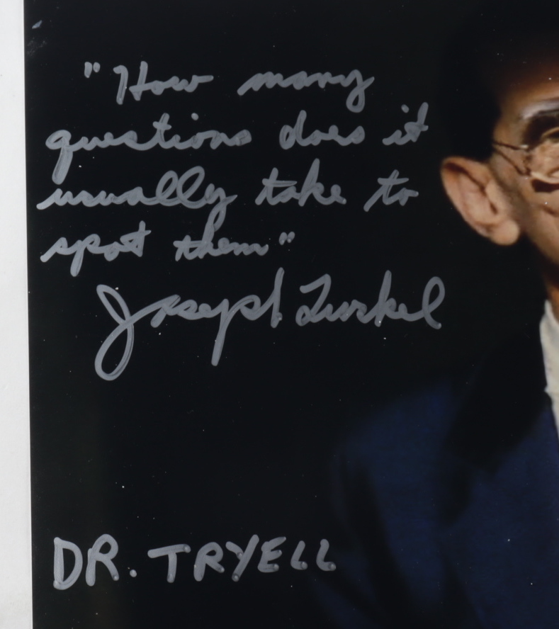 Photo measures 11" x 14" in size and has been hand-signed and inscribed by Joe Turkel.