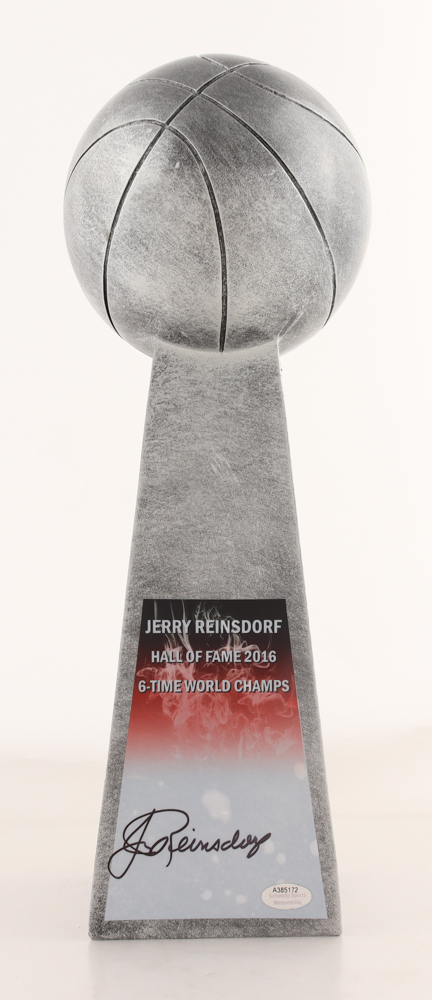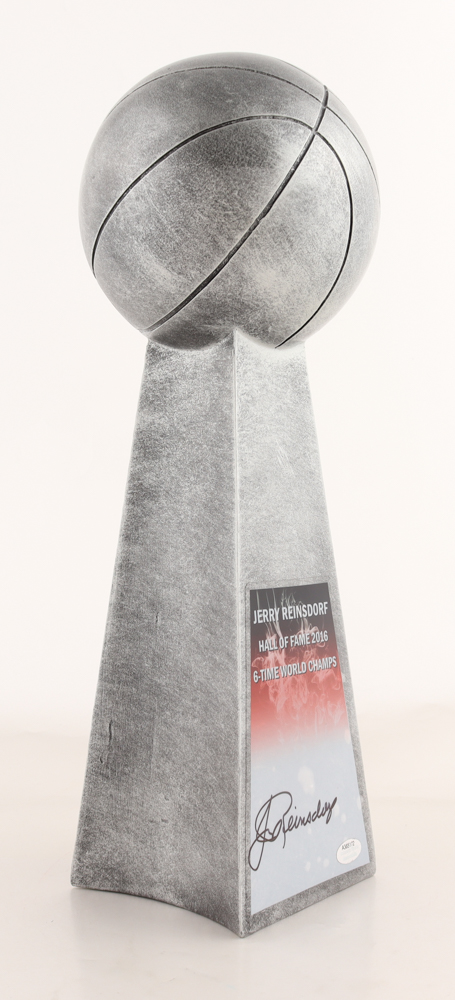 Replica championship trophy measures approximately 14" in height and has been hand-signed by Jerry Reinsdorf (Chicago Bulls).