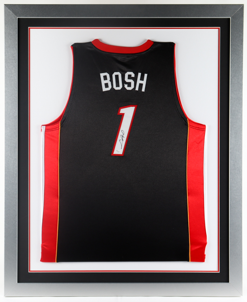 Custom frame measures approximately 35" x 43" in size and features a custom on-court style jersey that is hand-signed by Chris Bosh.